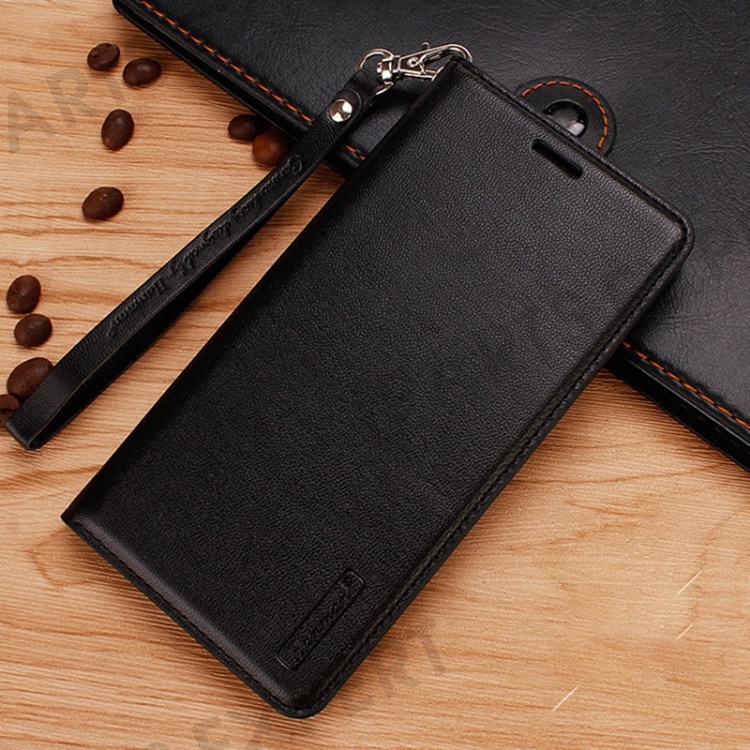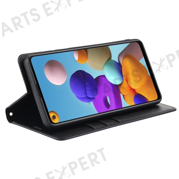 HANMAN Minuo Series for Samsung Galaxy A21s Anti-wear Phone Cover PU Leather Full Protection Cell Phone Case Wallet Stand - Black