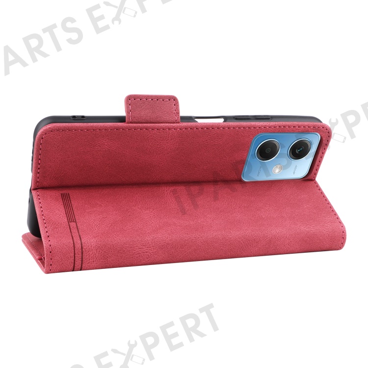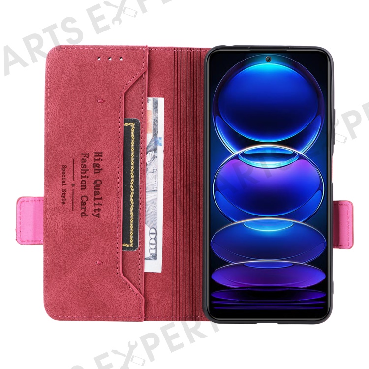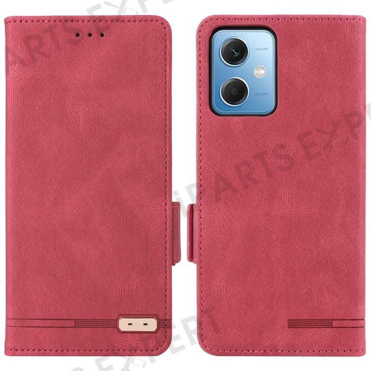 Hardware Decor Phone Case for Xiaomi Redmi Note 12 5G (Global) / (India) / (China) / Poco X5 5G , Dual Magnetic Clasp PU Leather Anti-drop Wallet Stand Phone Cover - Rose