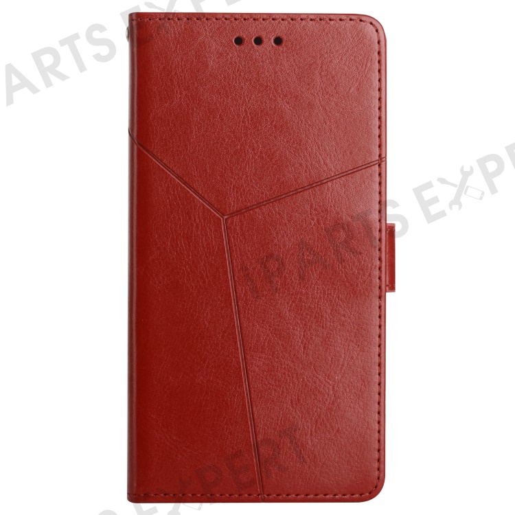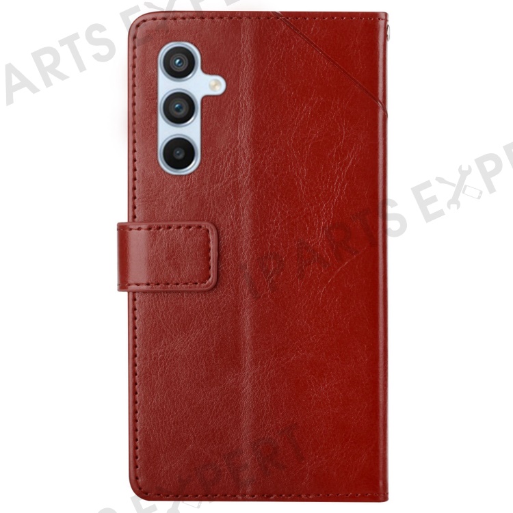 For Samsung Galaxy S24 FE Case with Wrist Strap Y Shaped Lines Imprint Leather Phone Cover - Brown