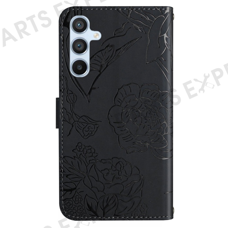 HT03 For Samsung Galaxy S23 FE Skin-touch Phone Case Imprinted Butterfly Flowers Stand Cover with Shoulder Strap - Black