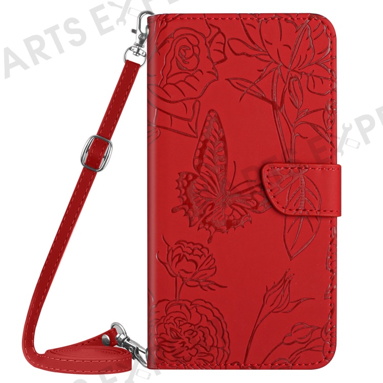 HT03 For Samsung Galaxy S24+ Case Leather Wallet Flip Stand Phone Cover with Shoulder Strap - Red