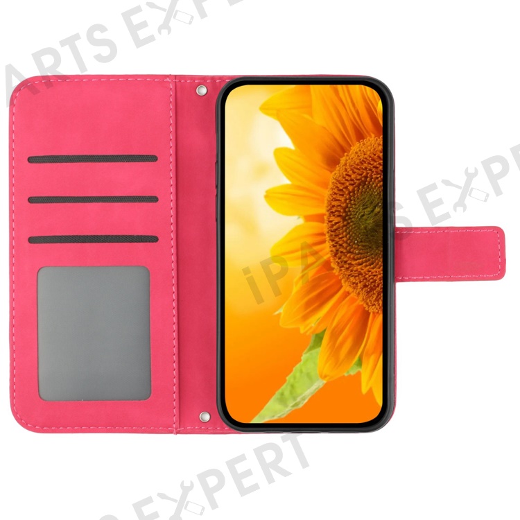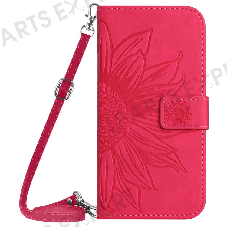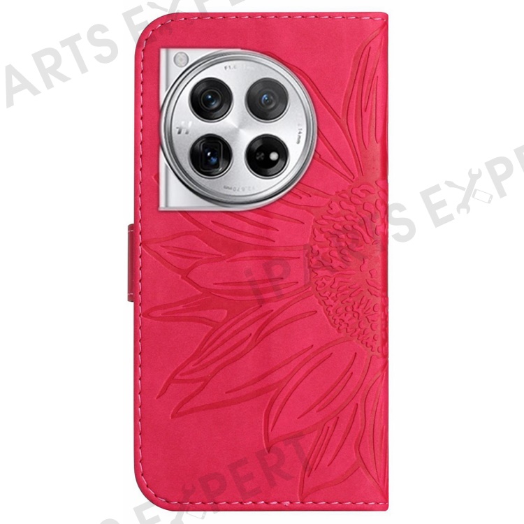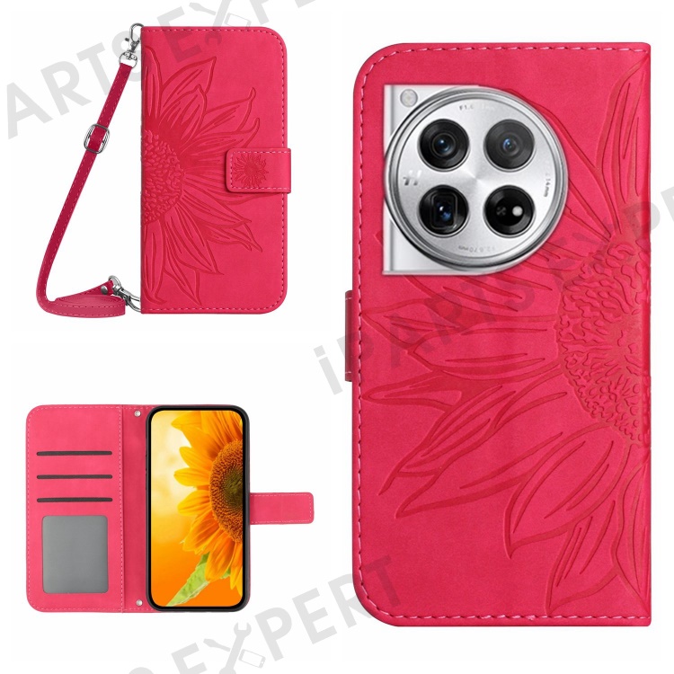 HT04 For OnePlus 12 5G PU Leather Case Sunflower Imprinted Phone Cover with Shoulder Strap - Rose