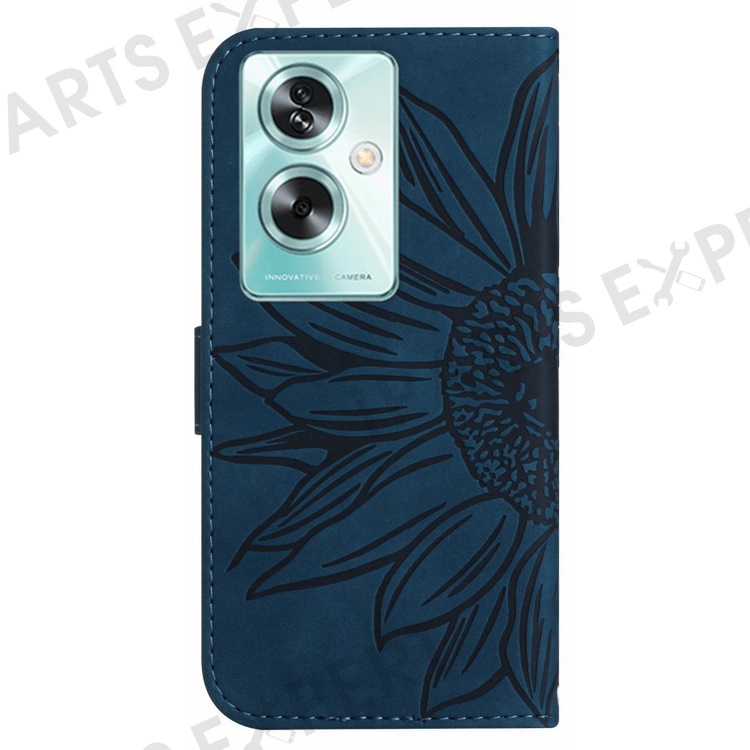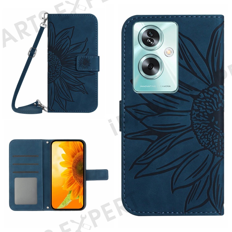 HT04 For Oppo Reno11 F 5G / F25 Pro 5G Case with Shoulder Strap Sunflower PU Leather Flip Phone Cover - Dark Blue