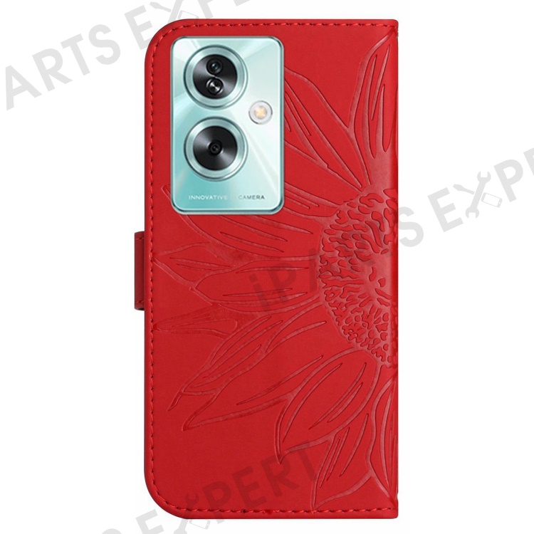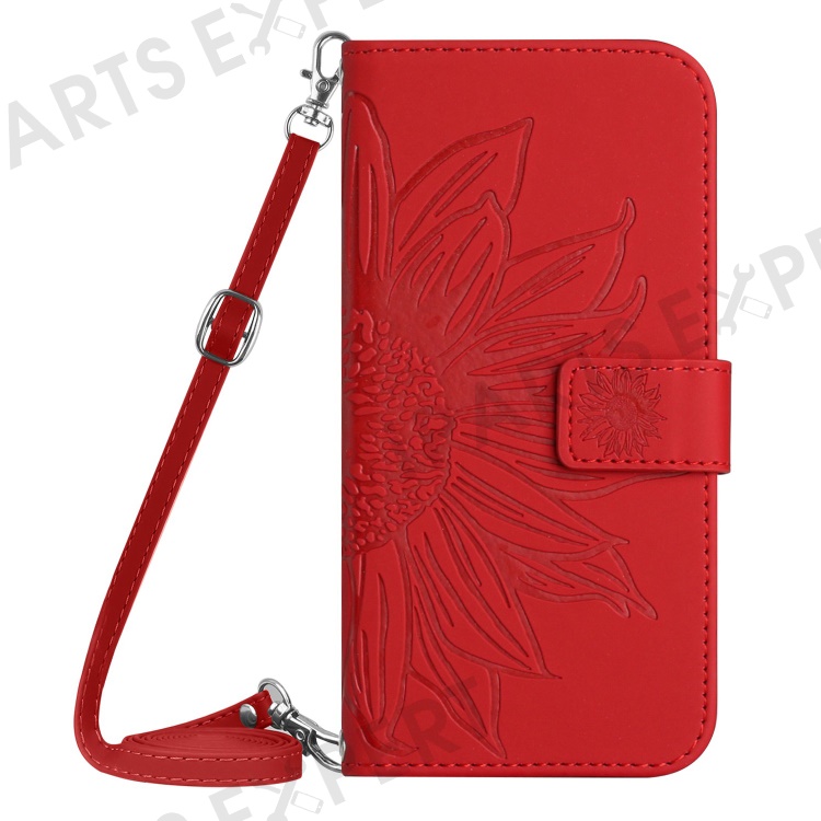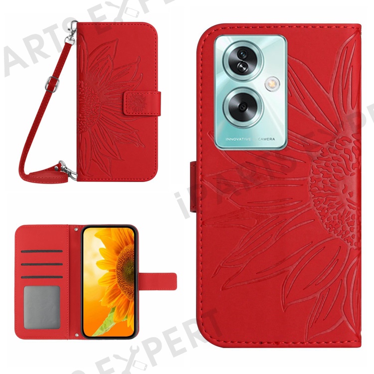 HT04 For Oppo Reno11 F 5G / F25 Pro 5G Case with Shoulder Strap Sunflower PU Leather Flip Phone Cover - Red