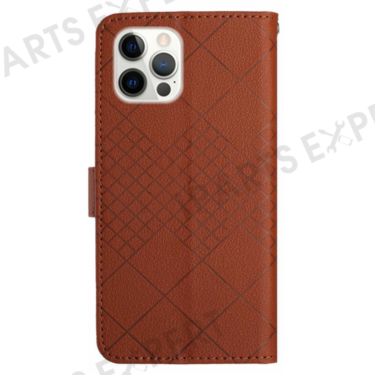 HT06 For iPhone 14 Pro Case Imprint PU Leather Litchi Texture Phone Cover - Brown