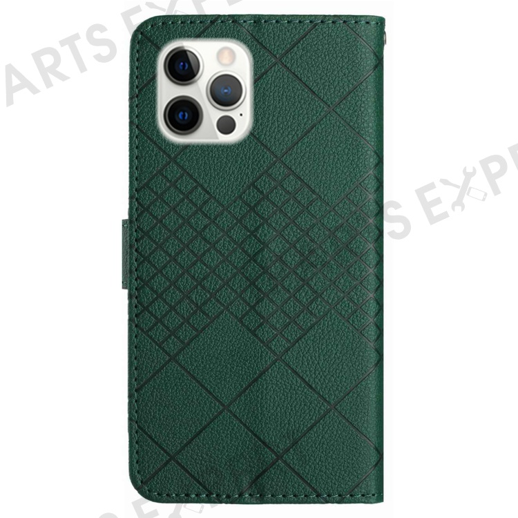 HT06 For iPhone 14 Pro Case Imprint PU Leather Litchi Texture Phone Cover - Green