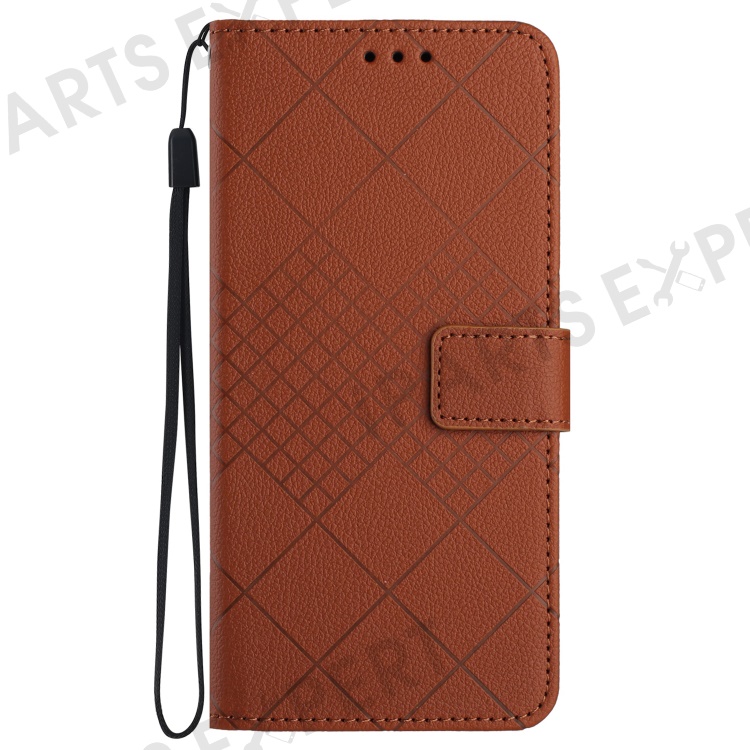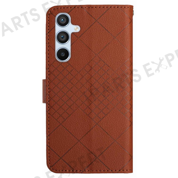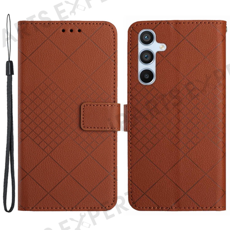 HT06 For Samsung Galaxy M35 5G Case Rhombus Litchi Texture Leather Phone Cover - Brown