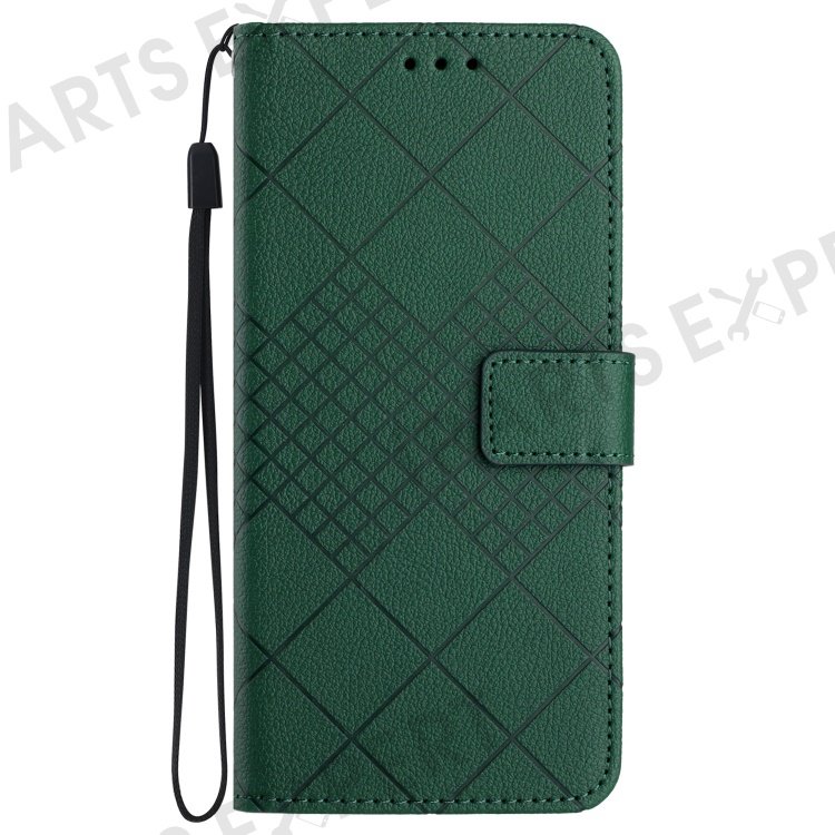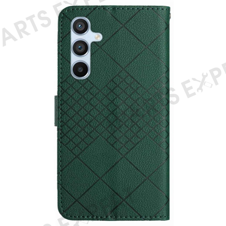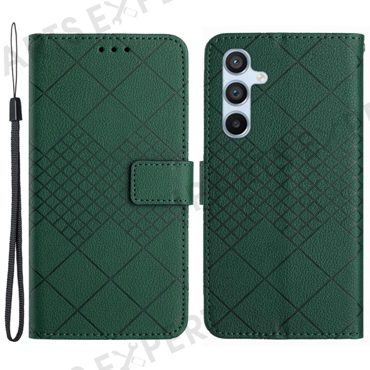 HT06 For Samsung Galaxy M35 5G Case Rhombus Litchi Texture Leather Phone Cover - Green