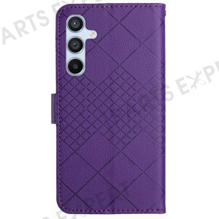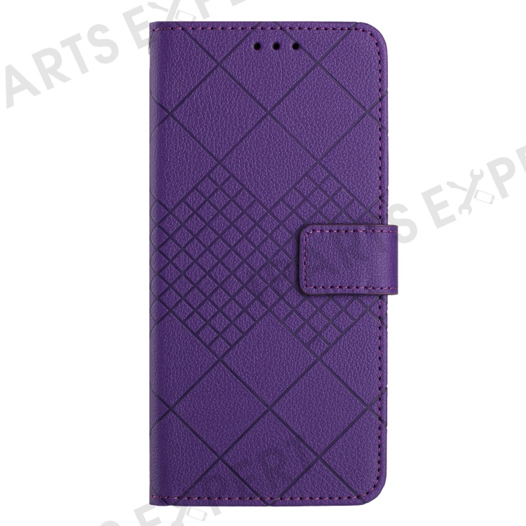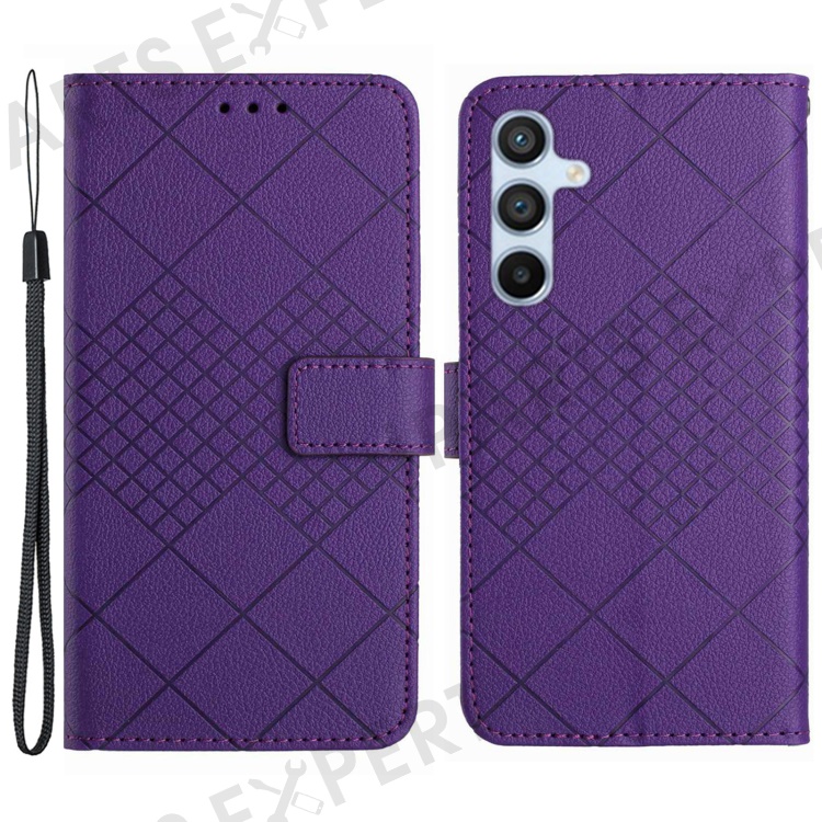 HT06 For Samsung Galaxy S24 FE Case Rhombus Leather Folio Phone Cover - Dark Purple