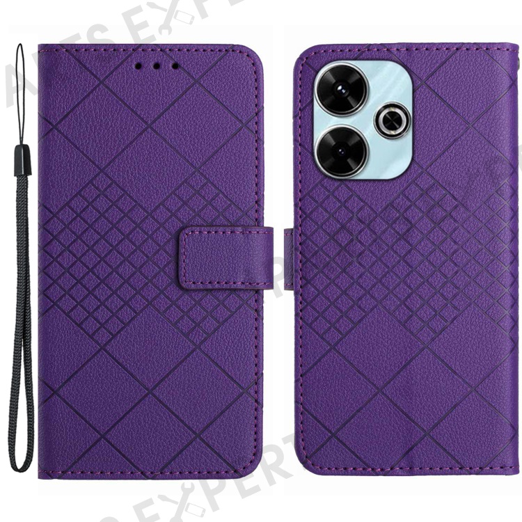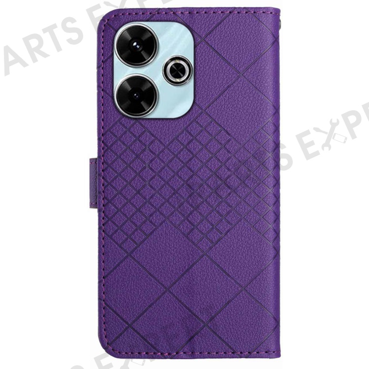 HT06 For Xiaomi Redmi 13 5G / 13 4G Case Litchi Texture Leather Wallet Phone Cover with Strap - Dark Purple