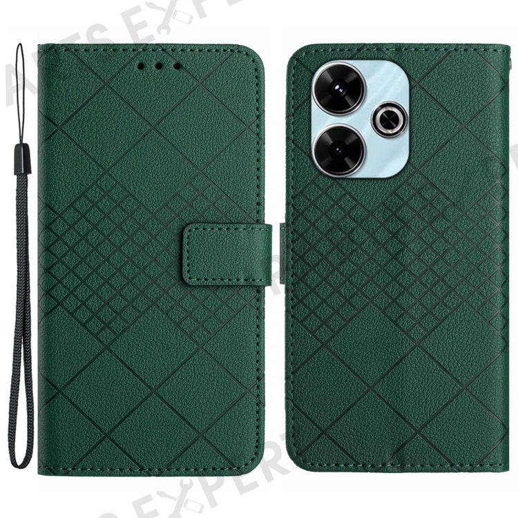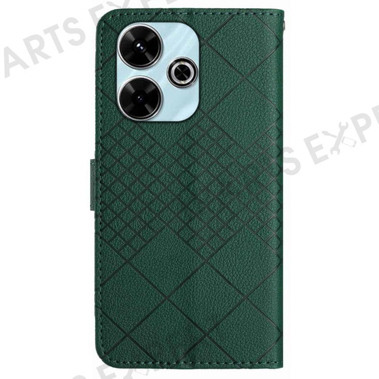 HT06 For Xiaomi Redmi 13 5G / 13 4G Case Litchi Texture Leather Wallet Phone Cover with Strap - Green