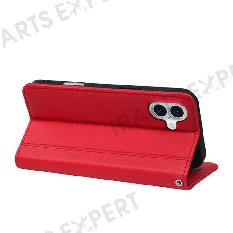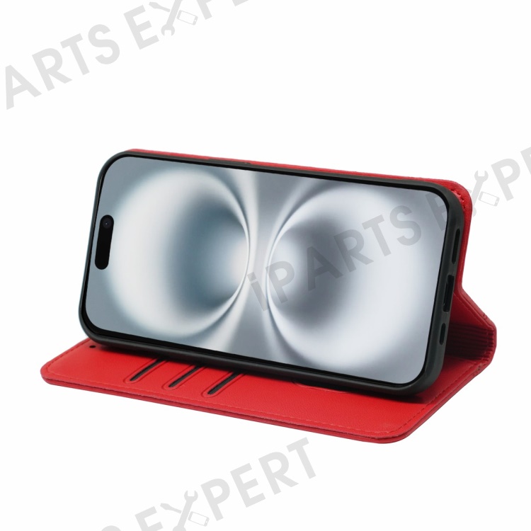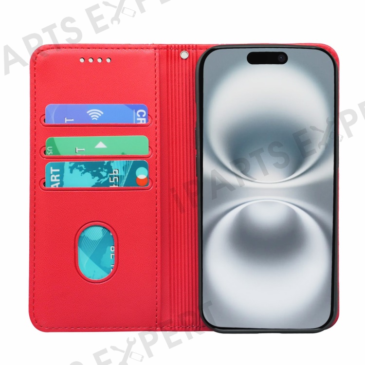 HX01 For iPhone 16 Plus Wallet Case Magnetic Closing PU Leather Phone Cover - Red