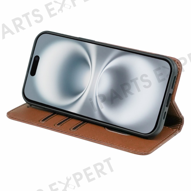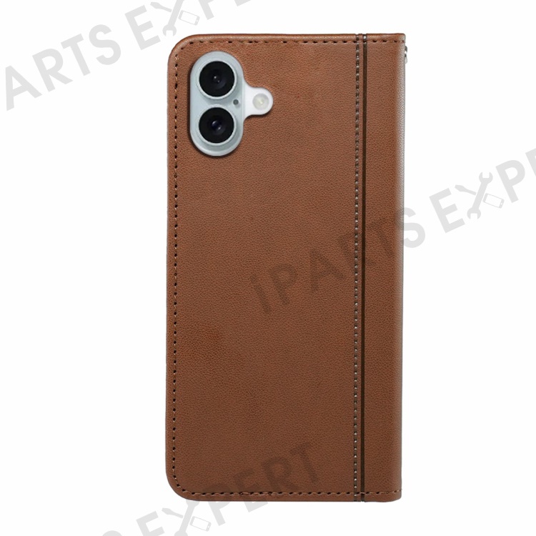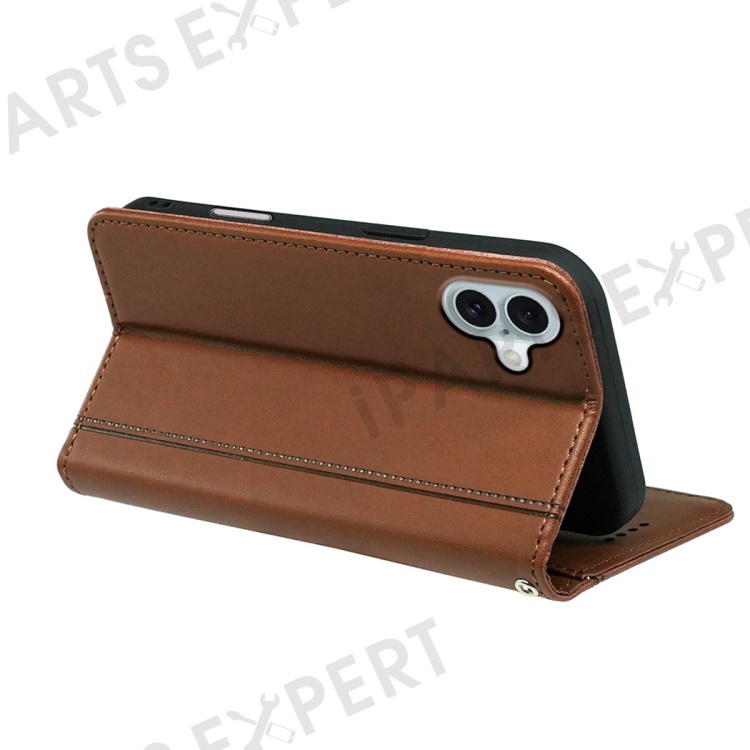 HX01 For iPhone 16 Wallet Case Magnetic Closing PU Leather Phone Cover - Brown