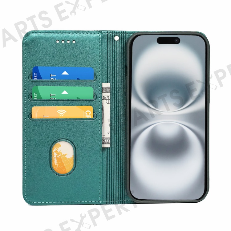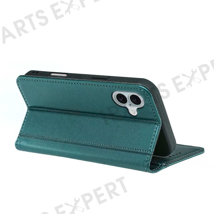 HX01 For iPhone 16 Wallet Case Magnetic Closing PU Leather Phone Cover - Green