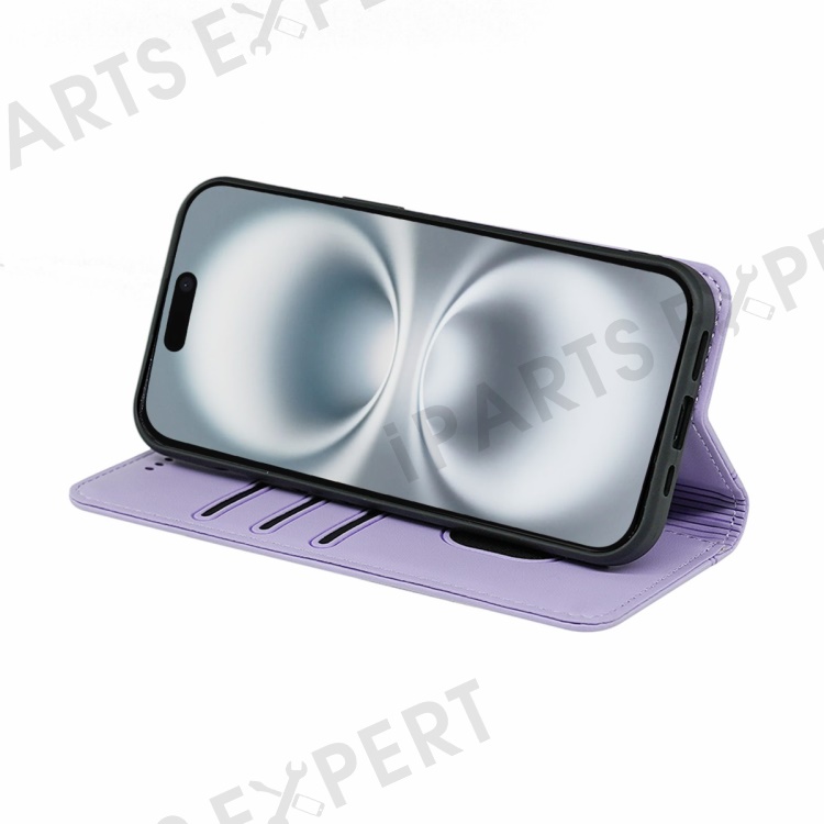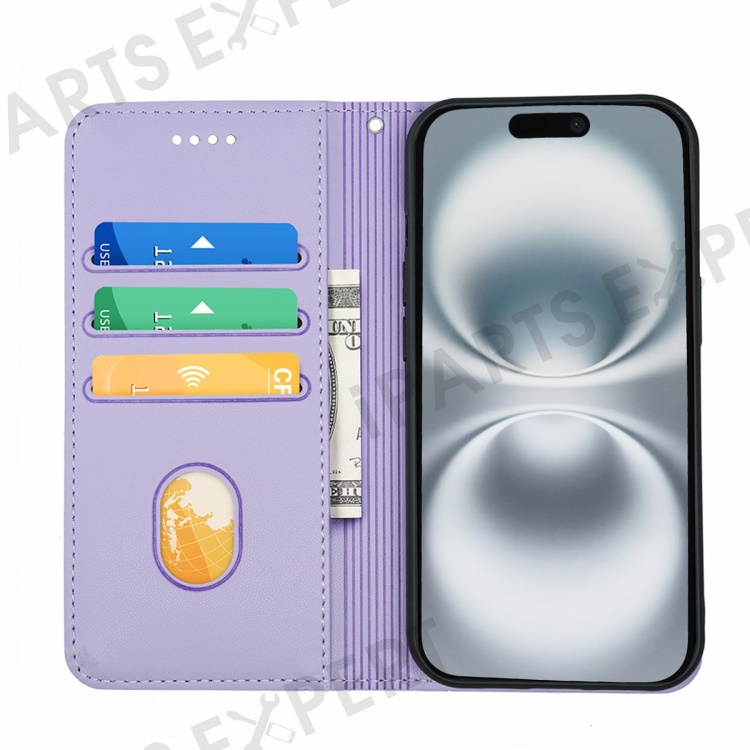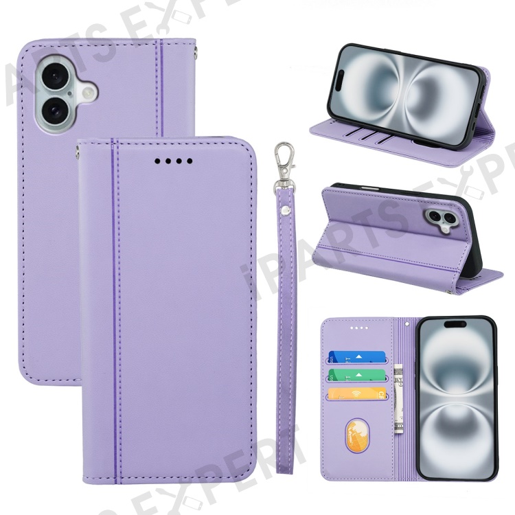 HX01 For iPhone 16 Wallet Case Magnetic Closing PU Leather Phone Cover - Purple