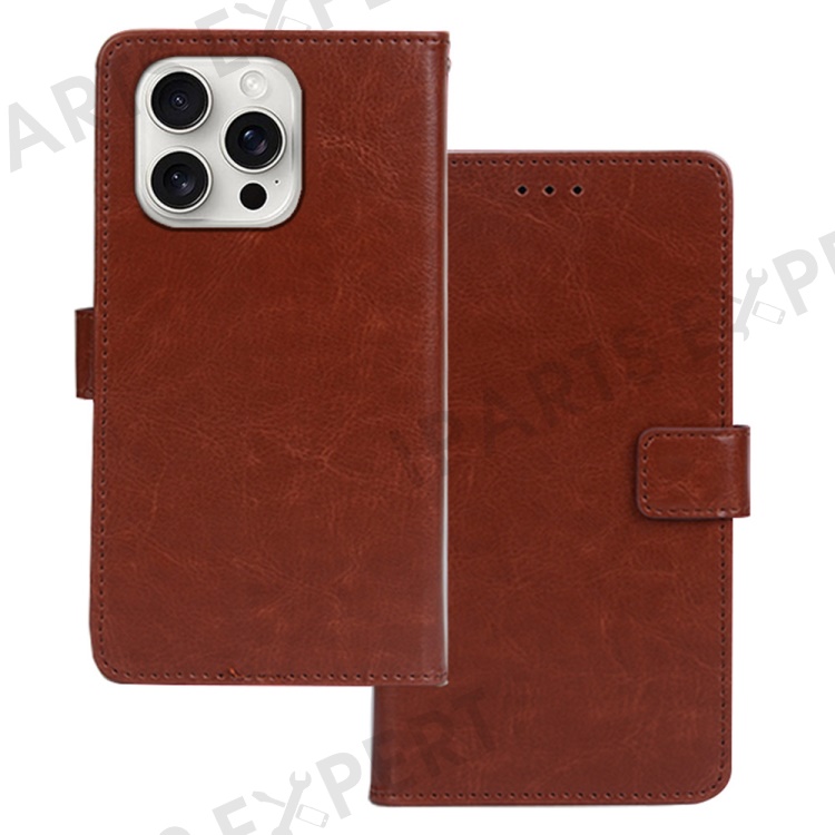 IDEWEI for iPhone 16 Pro Case Card Slots Holder Leather Phone Cover Crazy Horse Texture - Brown