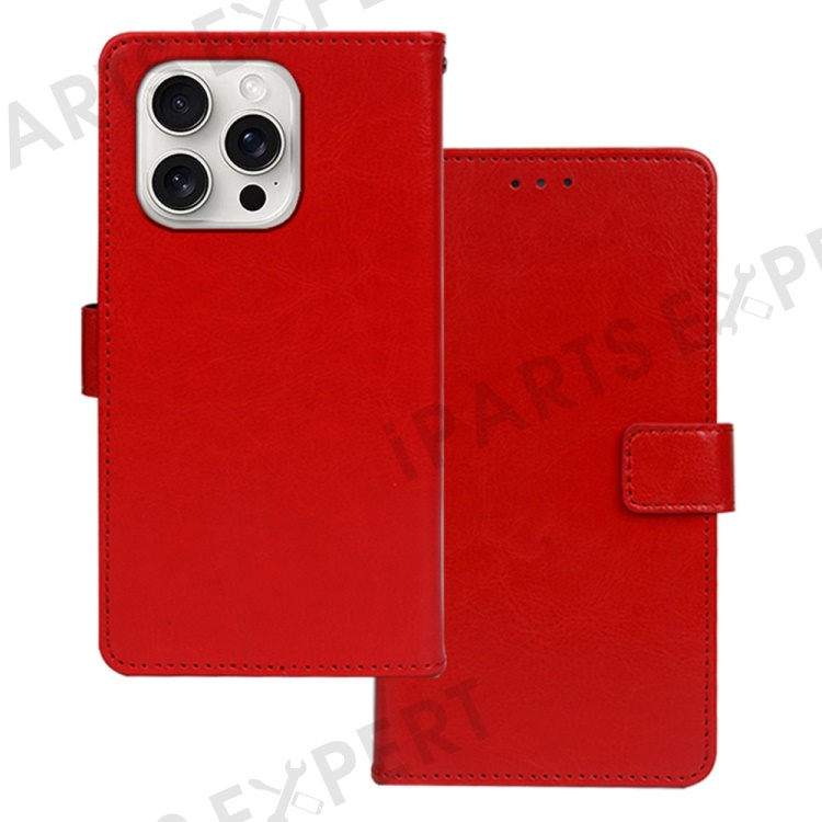 IDEWEI for iPhone 16 Pro Case Card Slots Holder Leather Phone Cover Crazy Horse Texture - Red