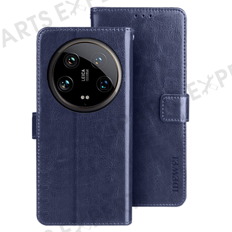 IDEWEI For Xiaomi 14 Ultra Case Flip Leather Phone Wallet Cover Crazy Horse Texture - Dark Blue
