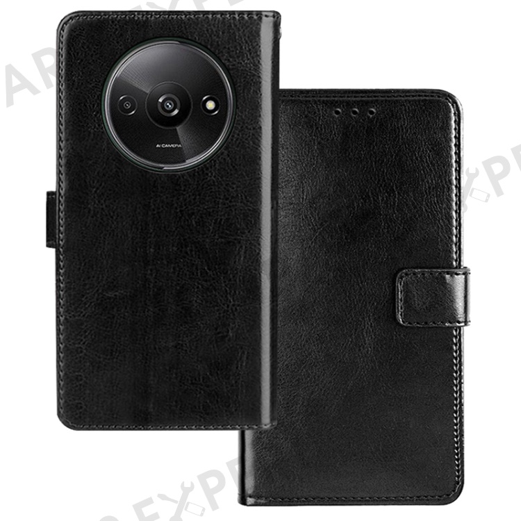 IDEWEI For Xiaomi Redmi A3 4G / Poco C61 4G Case Crazy Horse Texture Leather Phone Cover with Card Slots Wallet - Black
