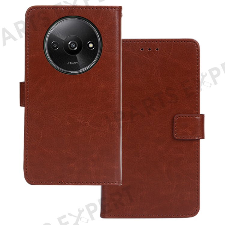 IDEWEI For Xiaomi Redmi A3 4G / Poco C61 4G Case Crazy Horse Texture Leather Phone Cover with Card Slots Wallet - Brown