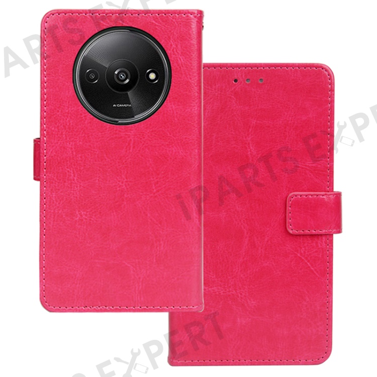 IDEWEI For Xiaomi Redmi A3 4G / Poco C61 4G Case Crazy Horse Texture Leather Phone Cover with Card Slots Wallet - Rose