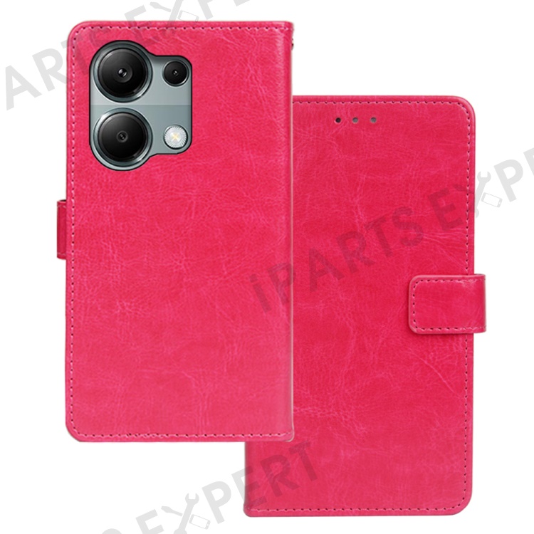 IDEWEI For Xiaomi Redmi Note 13 Pro 4G / Poco M6 Pro 4G Case Crazy Horse Texture Leather Cellphone Cover - Rose