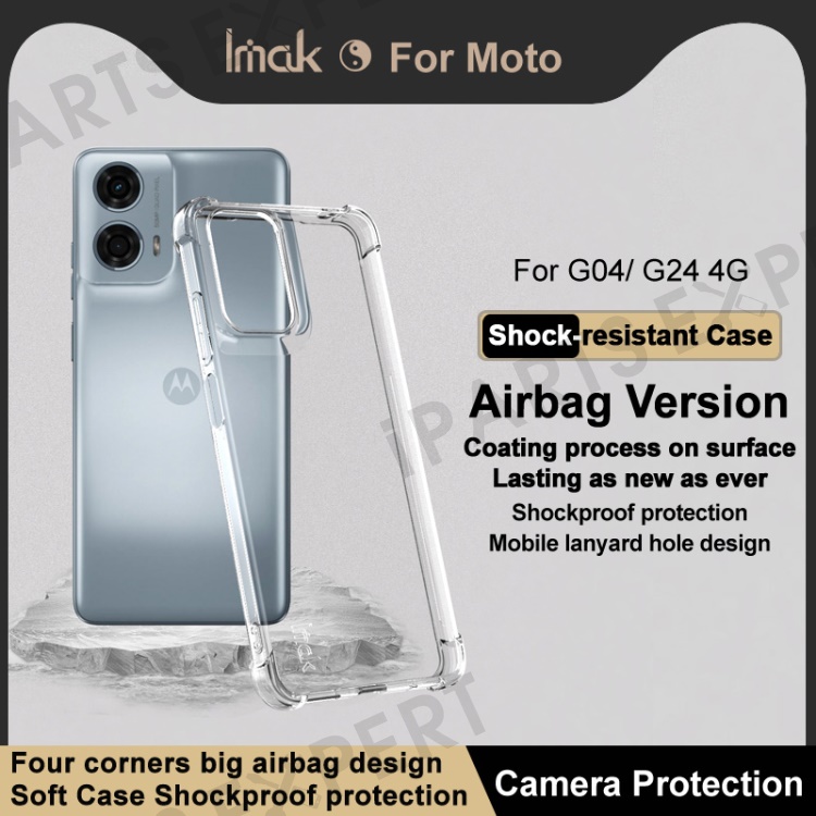 IMAK For Motorola Moto G04 4G / G24 4G Case Airbag Protection TPU Phone Cover - Transparent