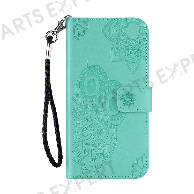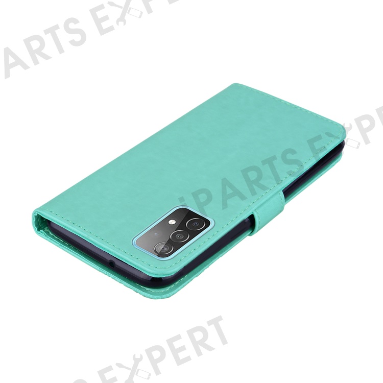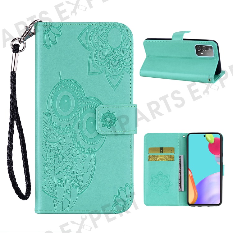 Imprint Flower Owl Pattern Stand Phone Leather Wallet Cover for Samsung Galaxy A52 4G/5G / A52s 5G - Cyan