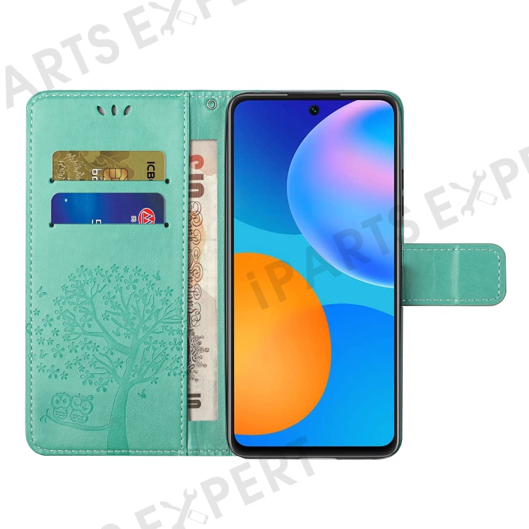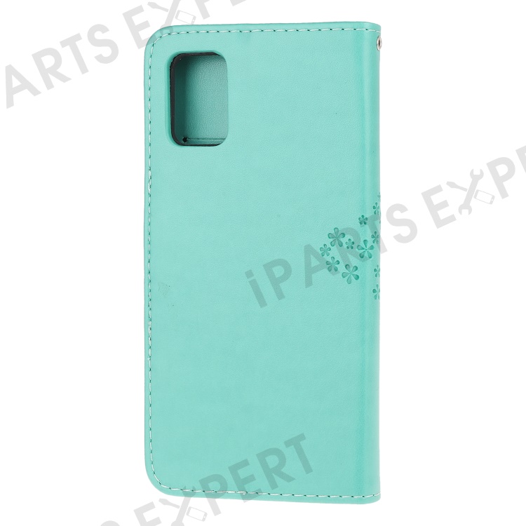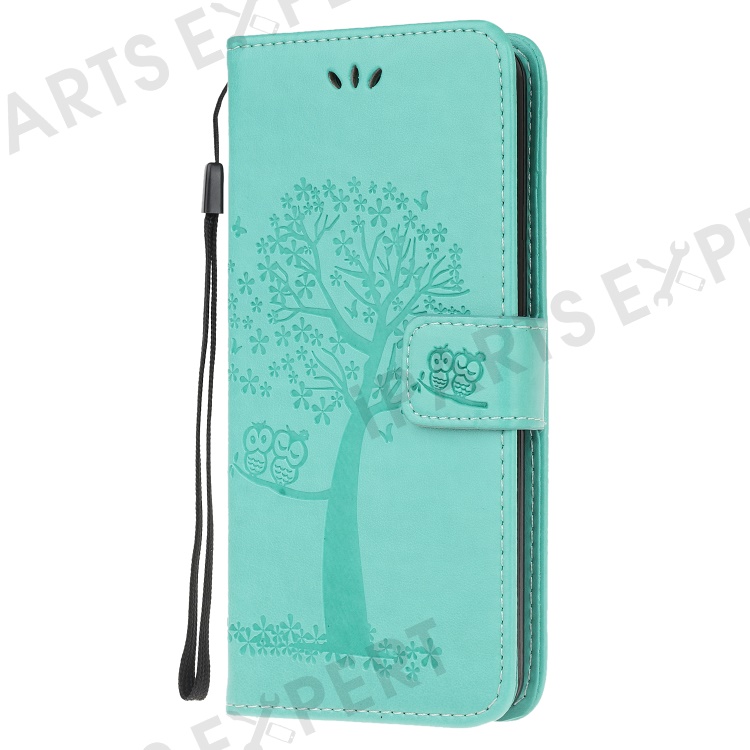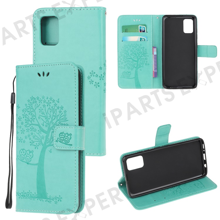 Imprint Tree Owl Pattern Leather Stylish Wallet Case for Samsung Galaxy A52 4G/5G / A52s 5G - Cyan