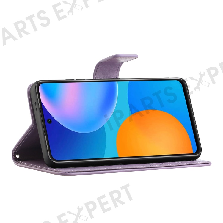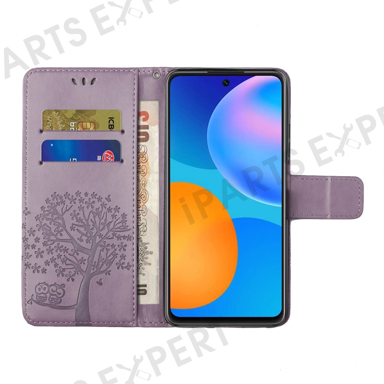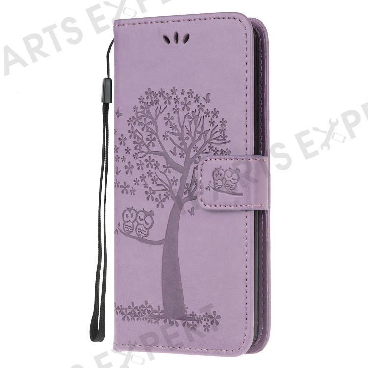Imprint Tree Owl Pattern Leather Stylish Wallet Case for Samsung Galaxy A52 4G/5G / A52s 5G - Purple