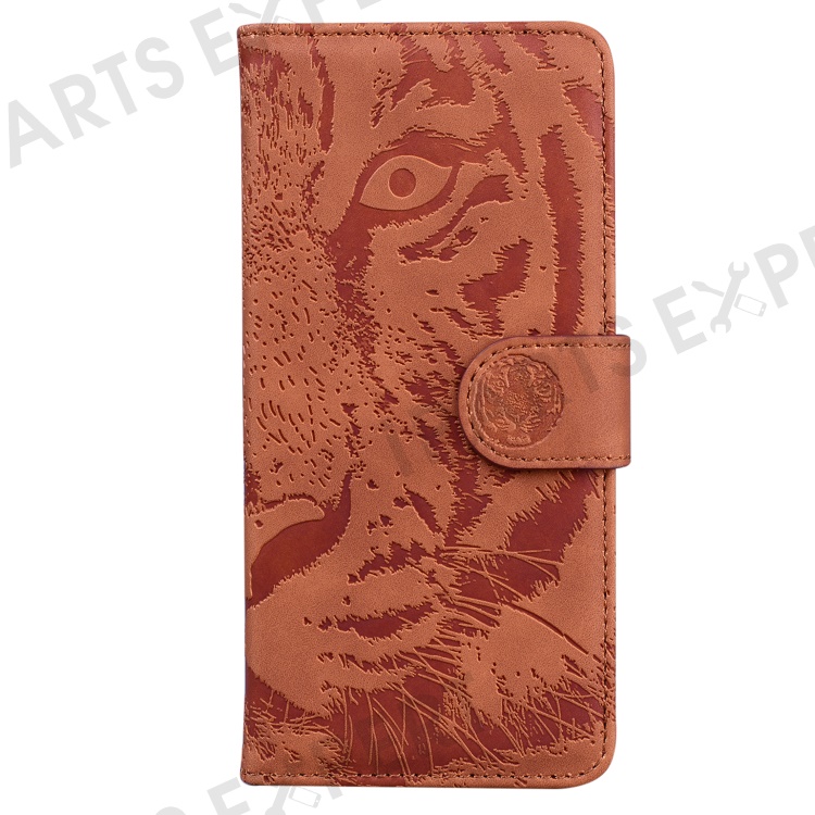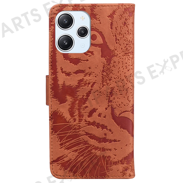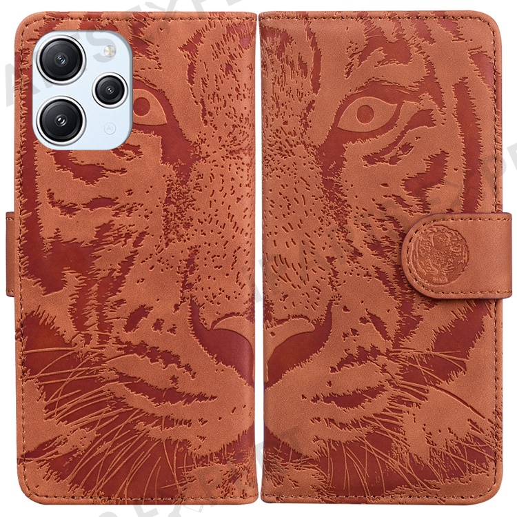 Imprinted Tiger PU Leather Wallet Cover for Xiaomi Redmi 12 4G , Anti-drop Phone Stand Case - Brown