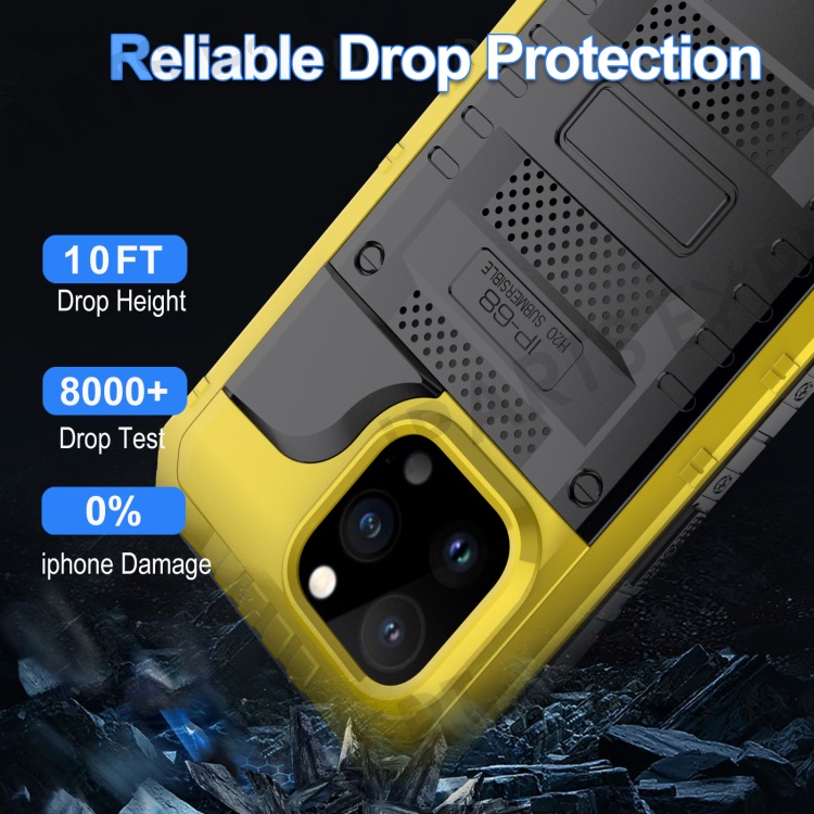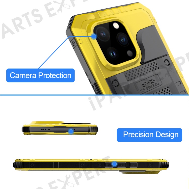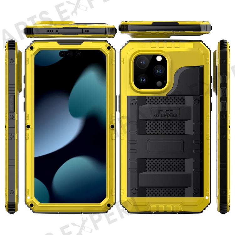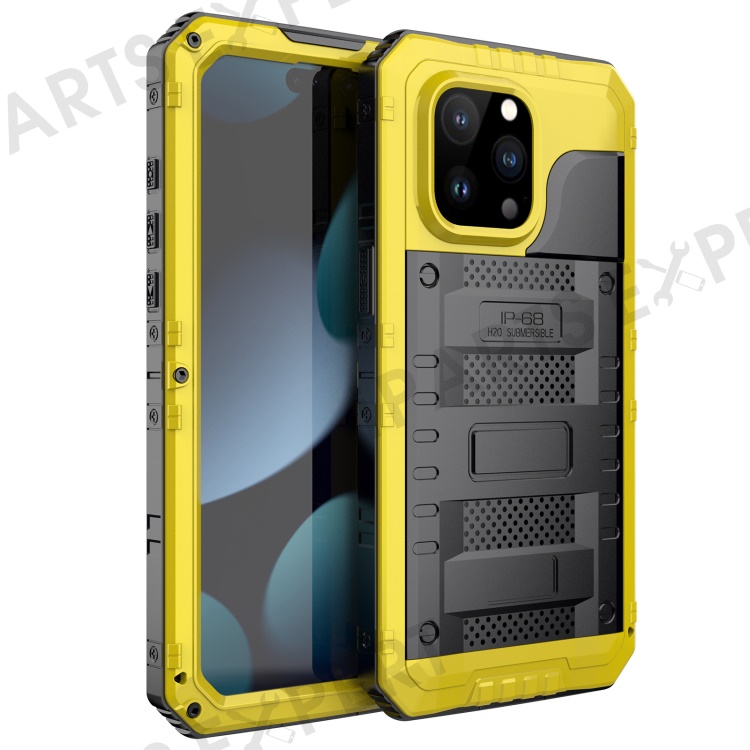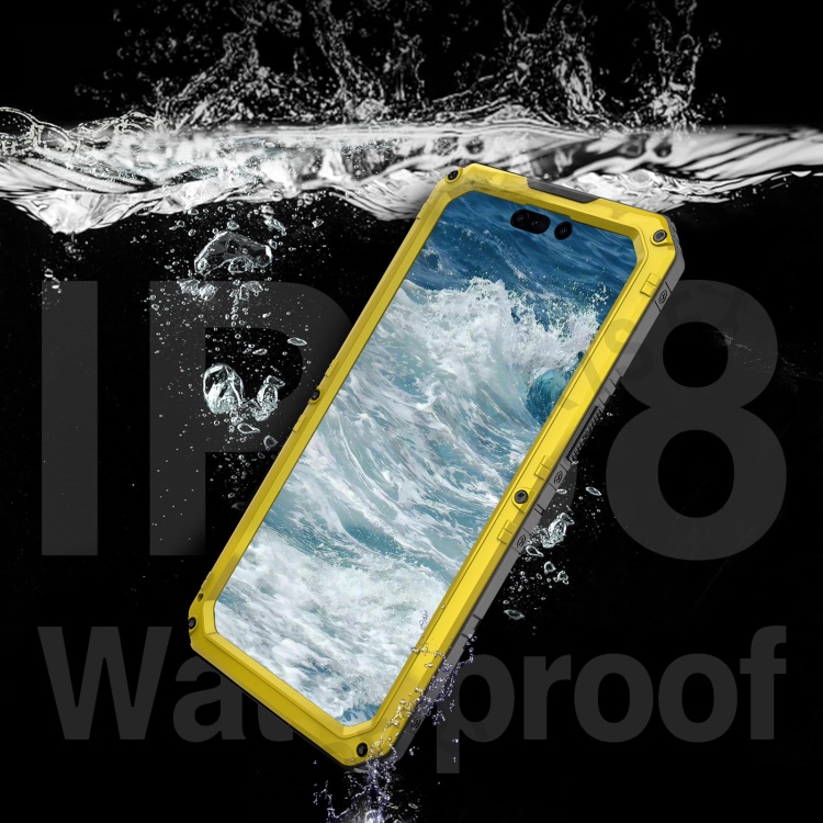 IP68 Waterproof Phone Case for iPhone 15 Pro PC+Silicone Cover with Screen Protector - Yellow