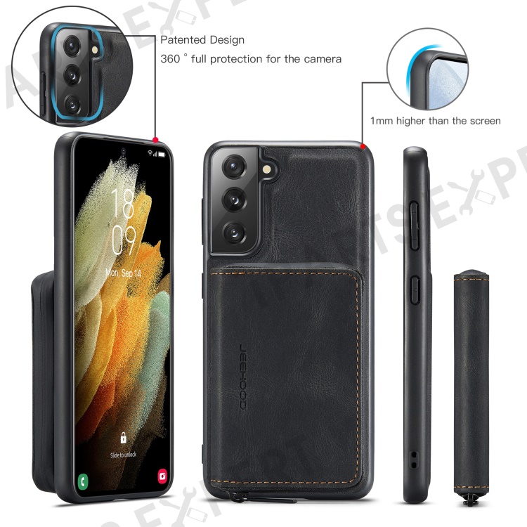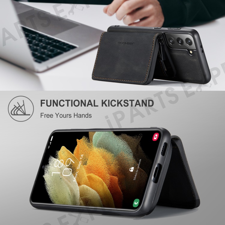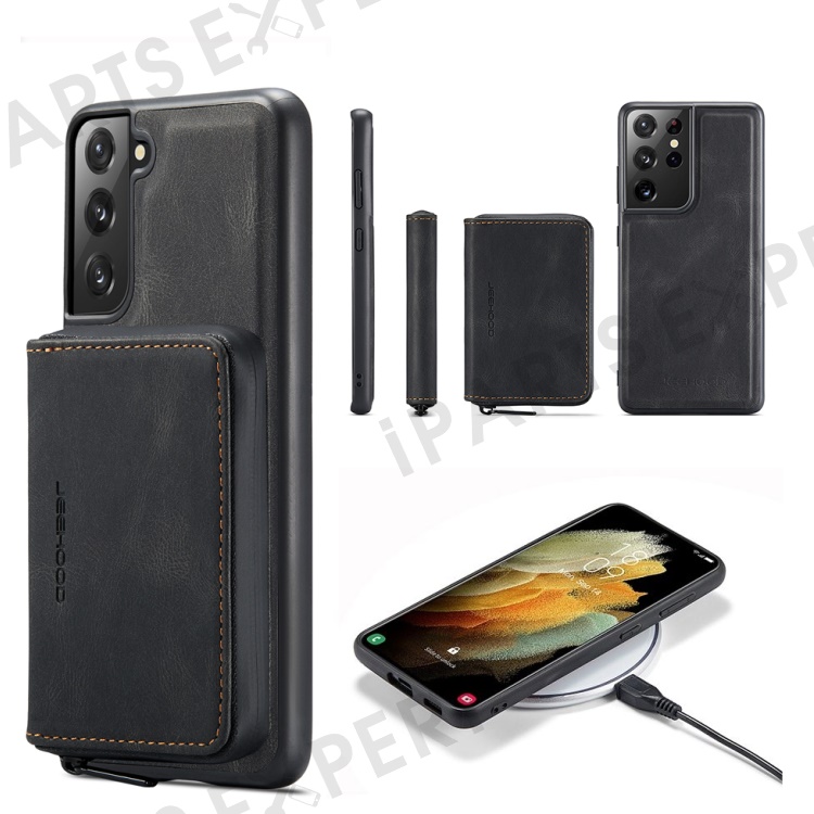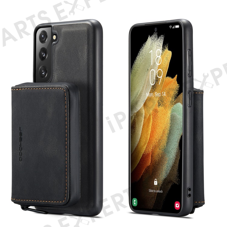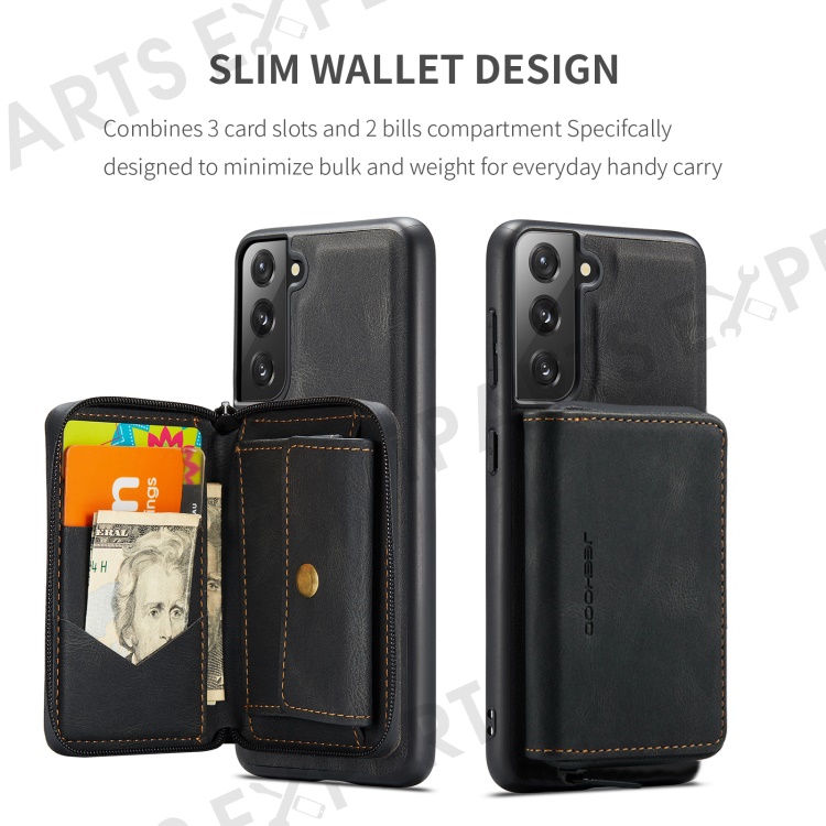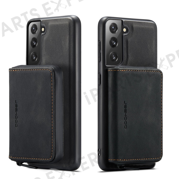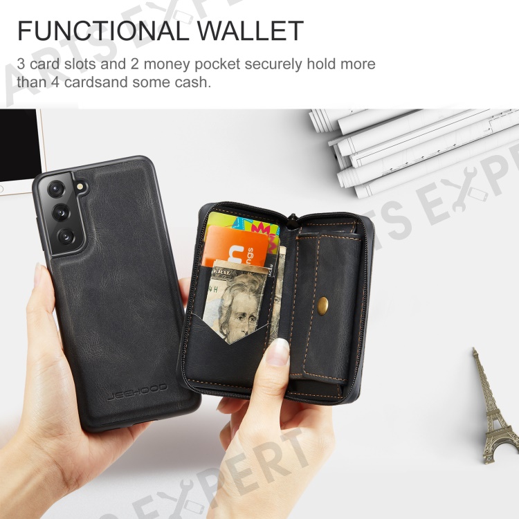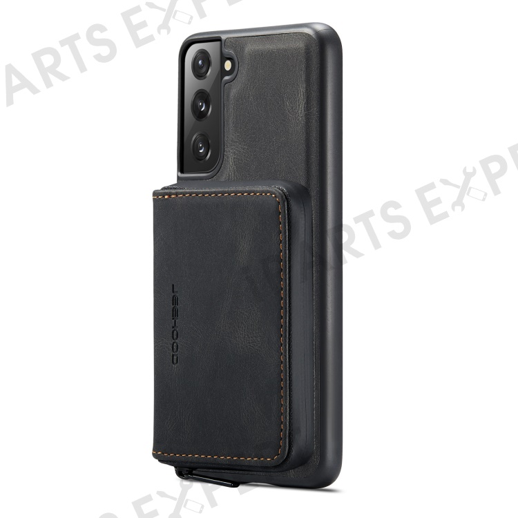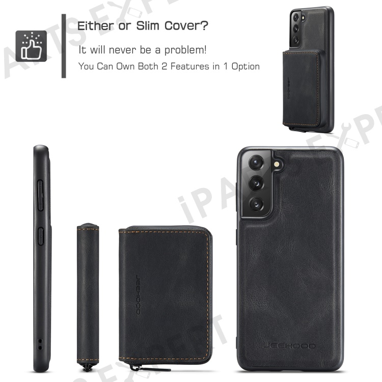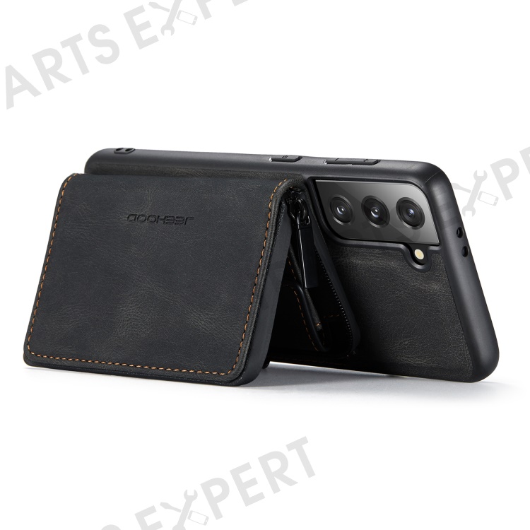 JEEHOOD Detachable 2-in-1 Magnetic Zipper Wallet Leather Coated TPU Phone Case for Samsung Galaxy S22+ 5G - Black