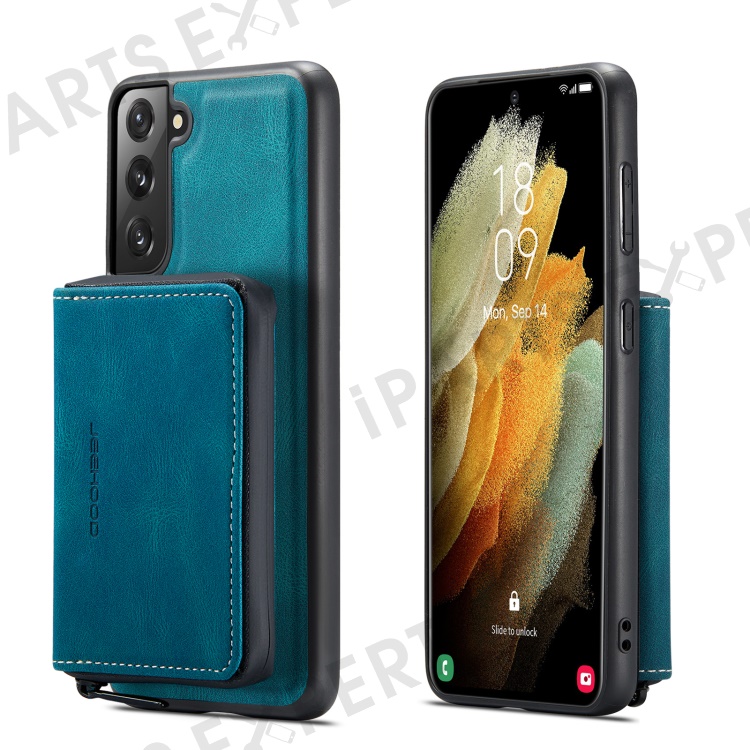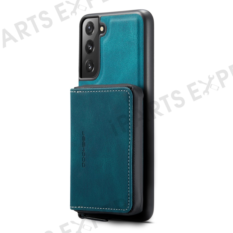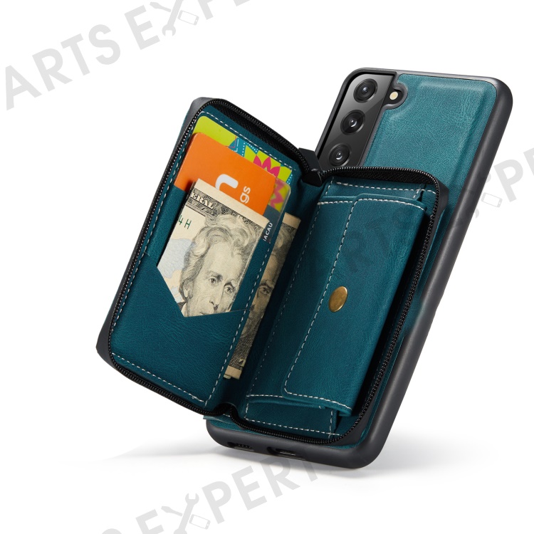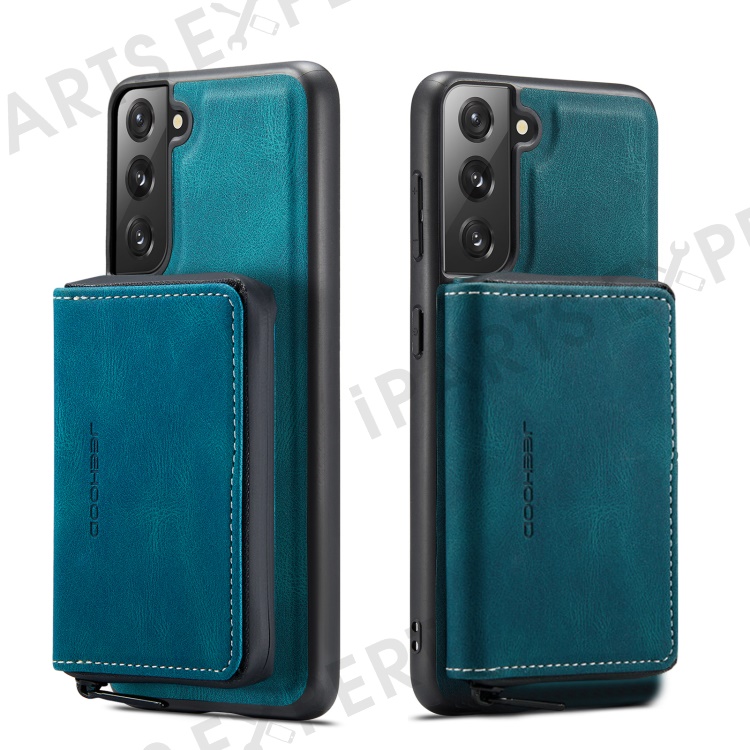 JEEHOOD Detachable 2-in-1 Magnetic Zipper Wallet Leather Coated TPU Phone Case for Samsung Galaxy S22+ 5G - Blue