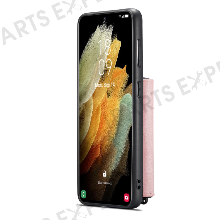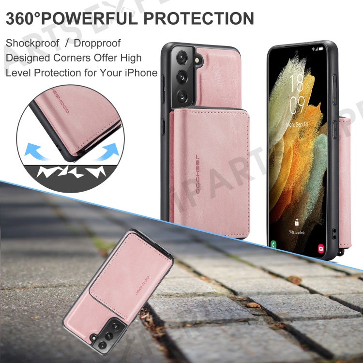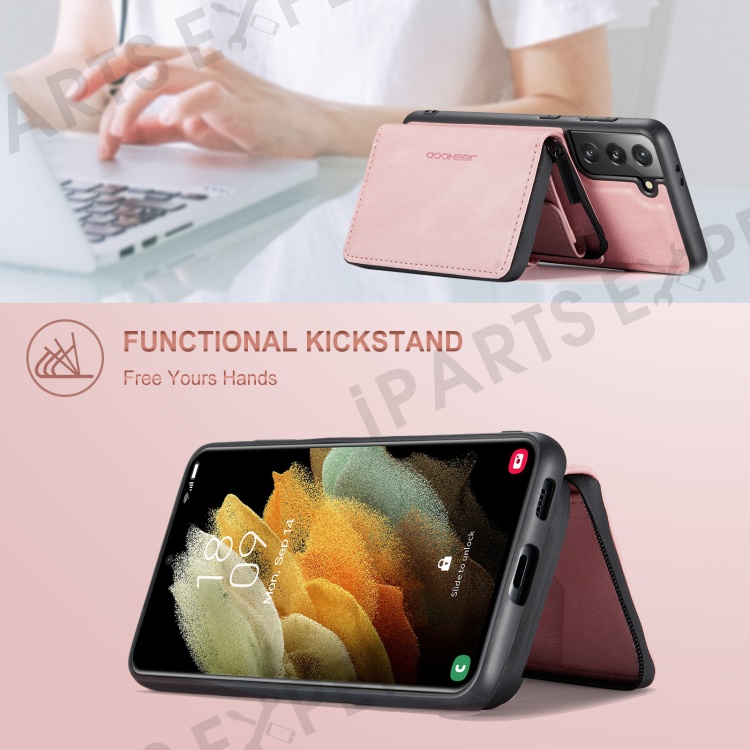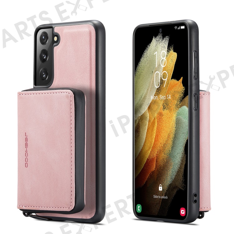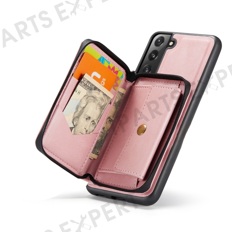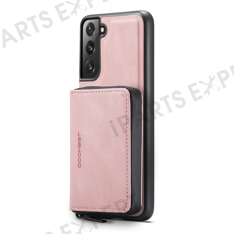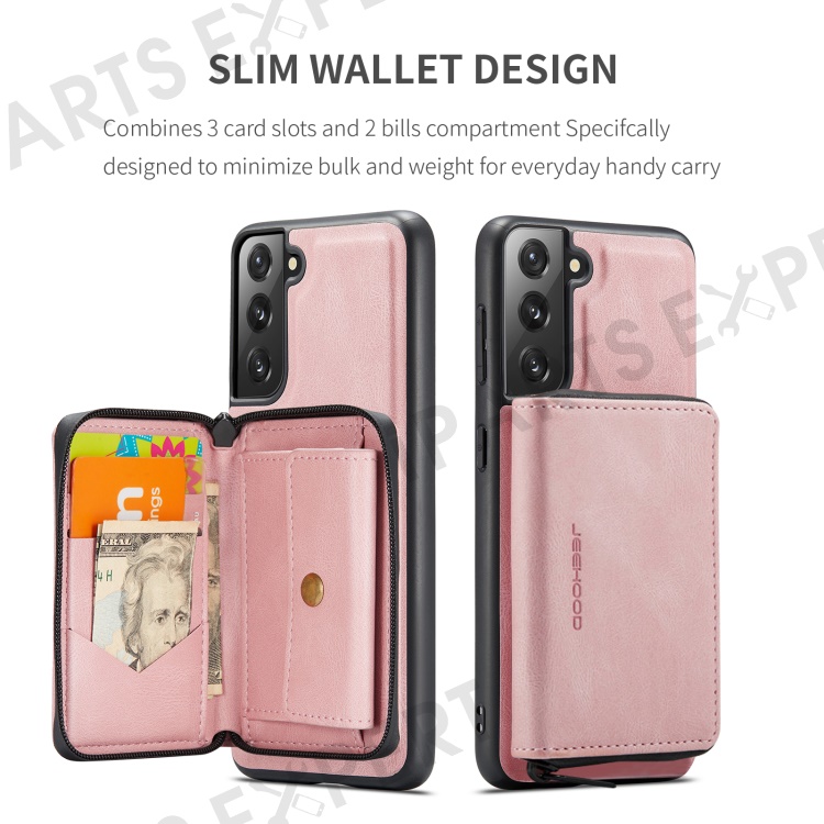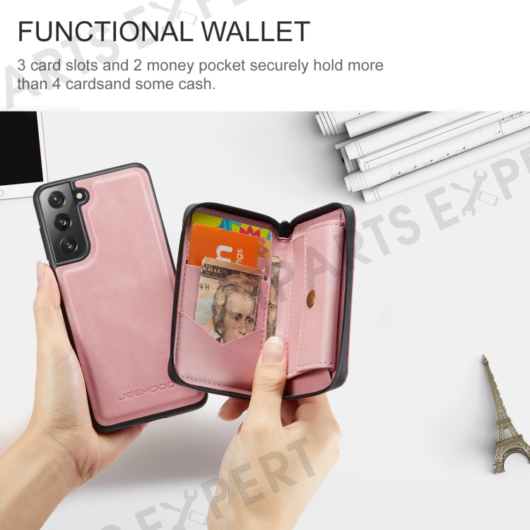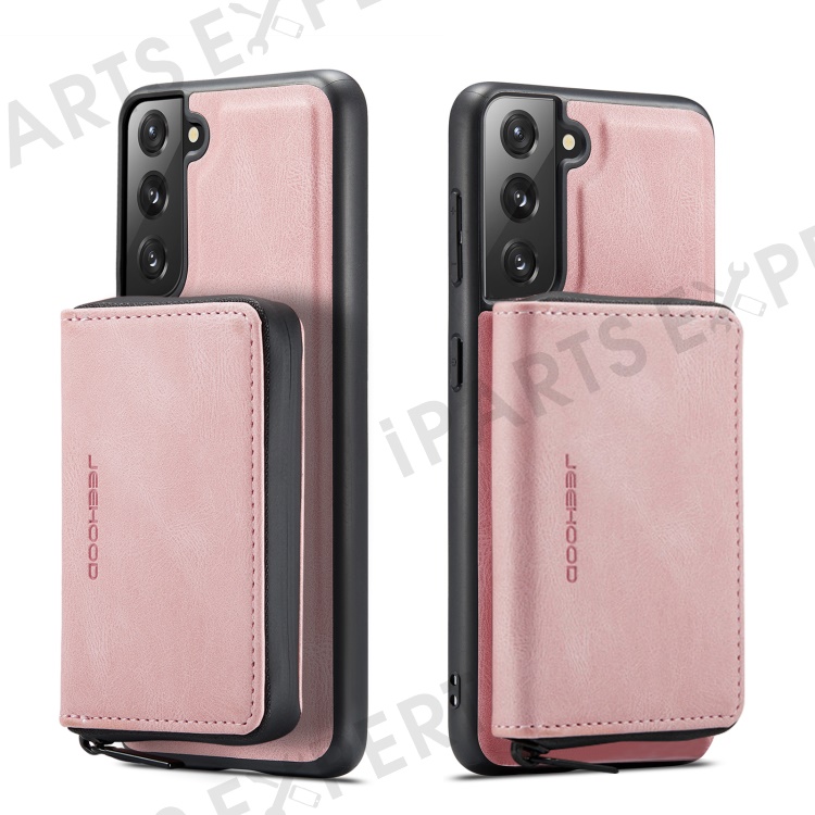 JEEHOOD Detachable 2-in-1 Magnetic Zipper Wallet Leather Coated TPU Phone Case for Samsung Galaxy S22+ 5G - Pink