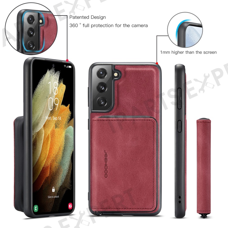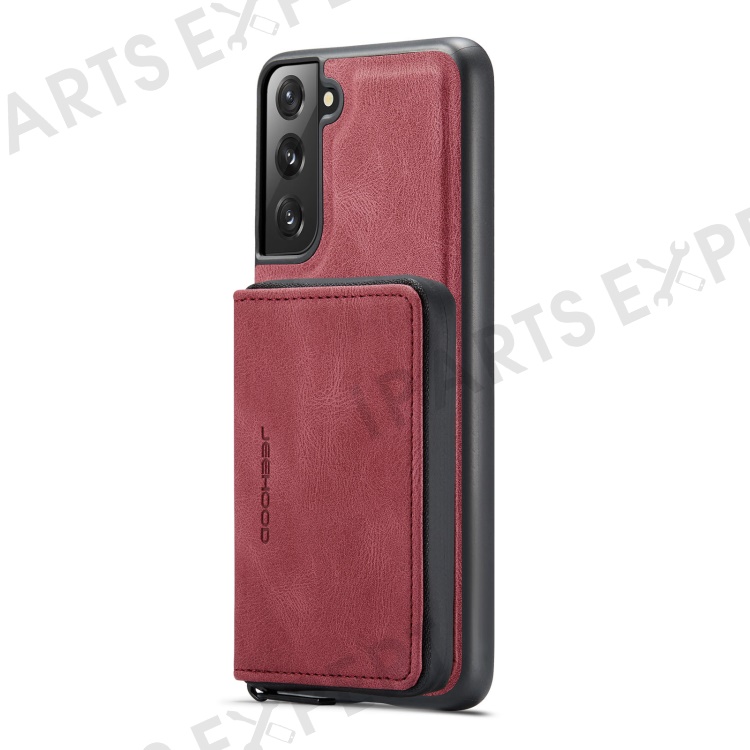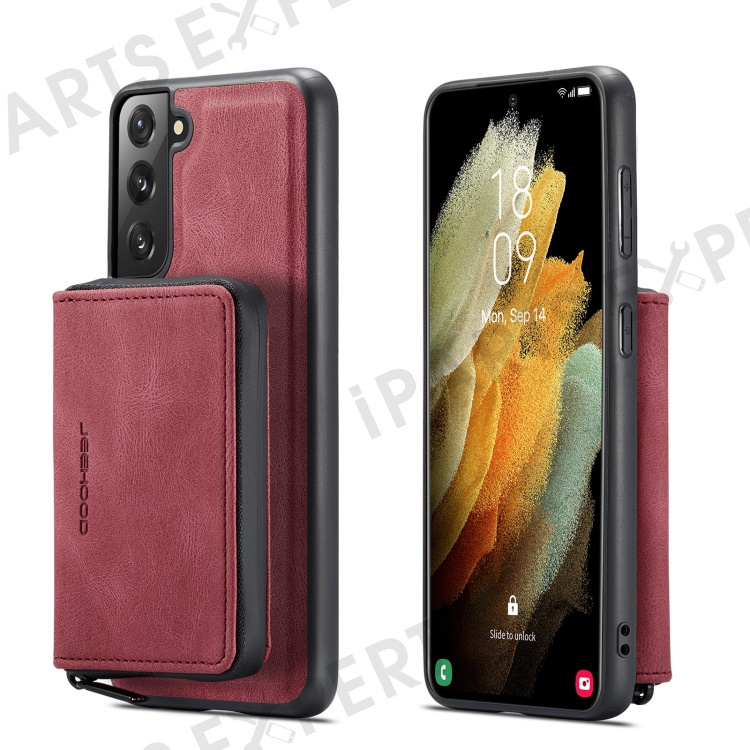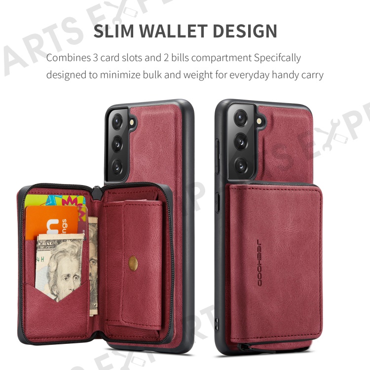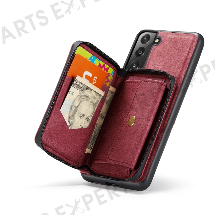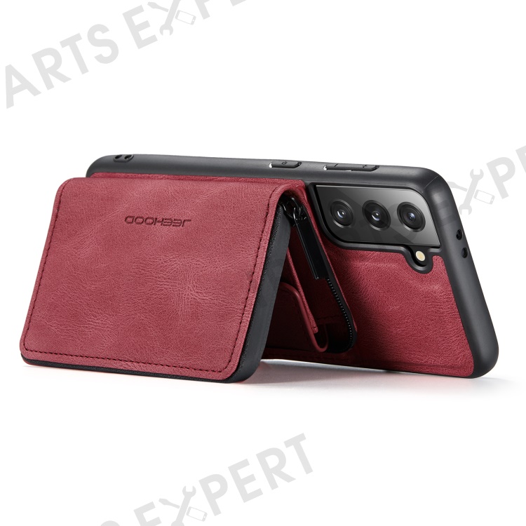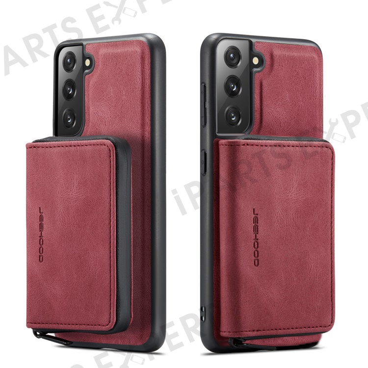 JEEHOOD Detachable 2-in-1 Magnetic Zipper Wallet Leather Coated TPU Phone Case for Samsung Galaxy S22+ 5G - Red