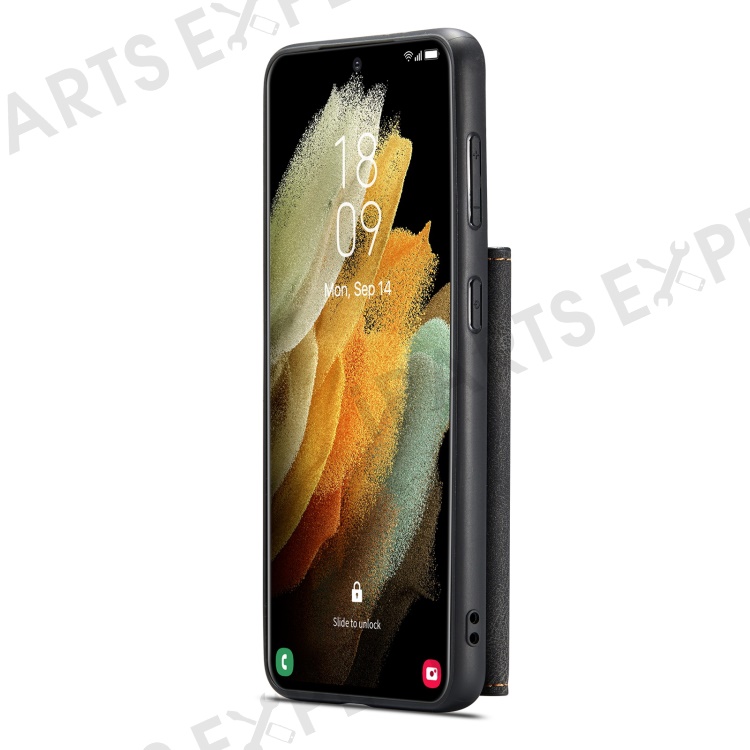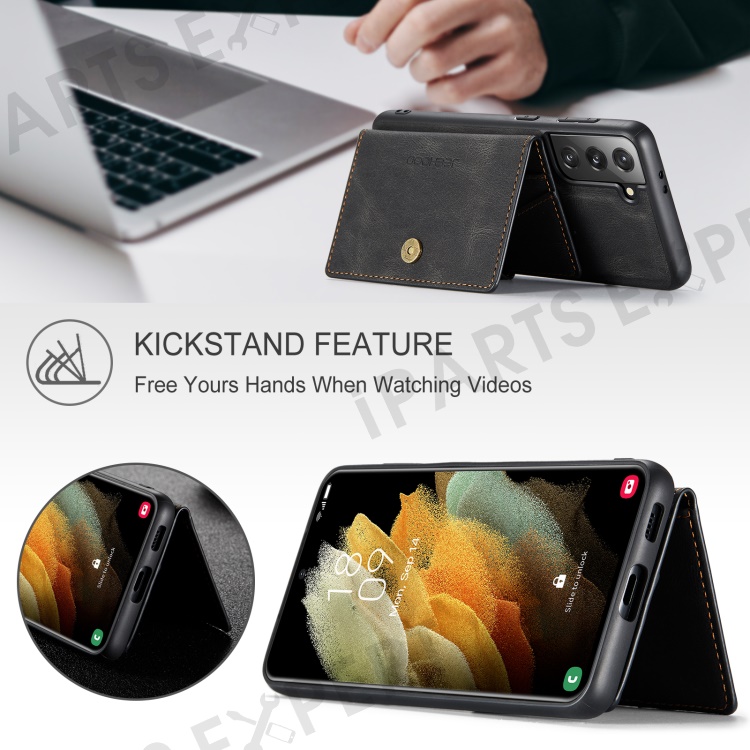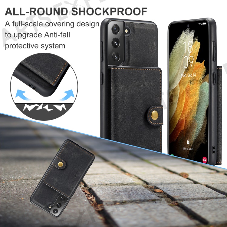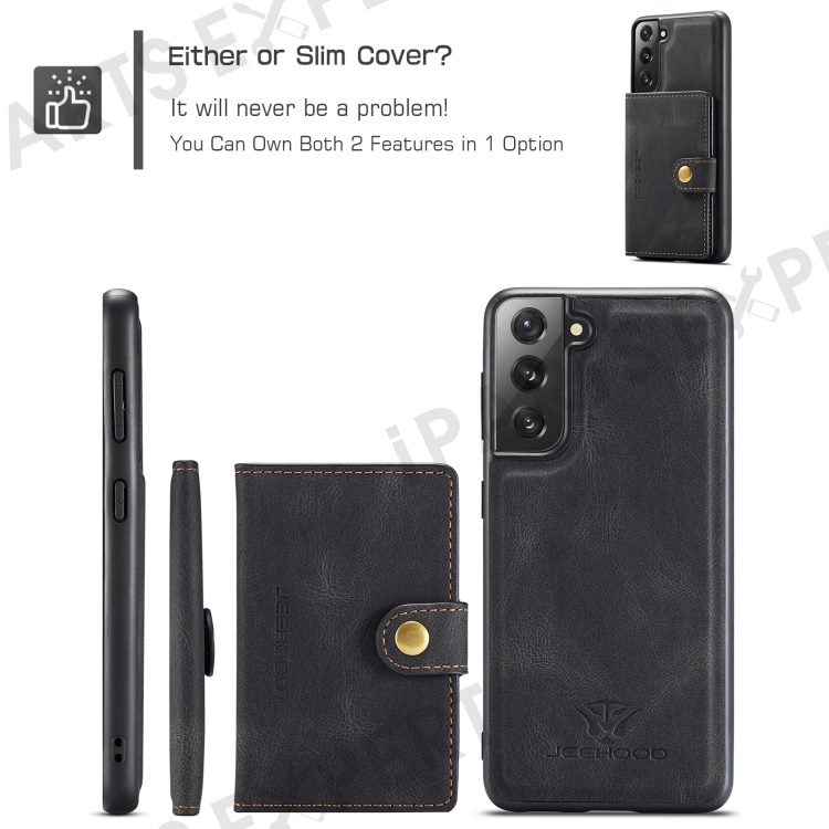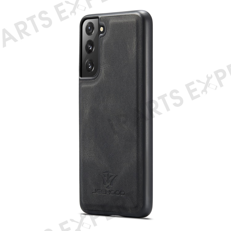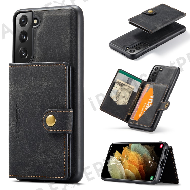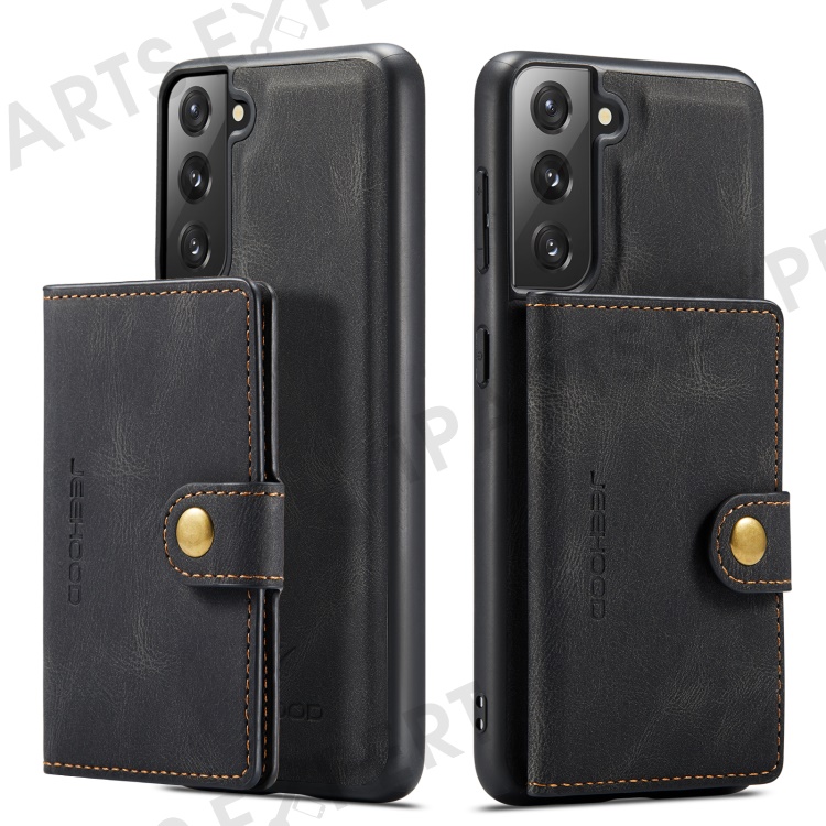 JEEHOOD Magnetic Absorption Detachable Wallet + Leather Coated TPU Cover Phone Case with Kickstand for Samsung Galaxy S22+ 5G - Black