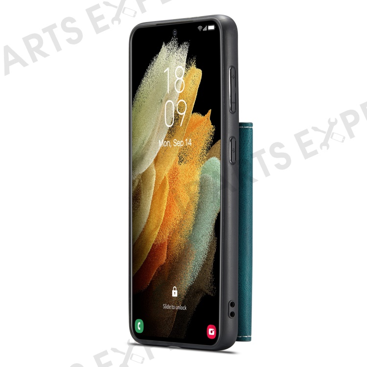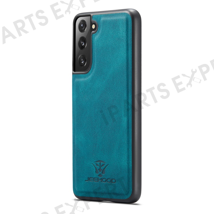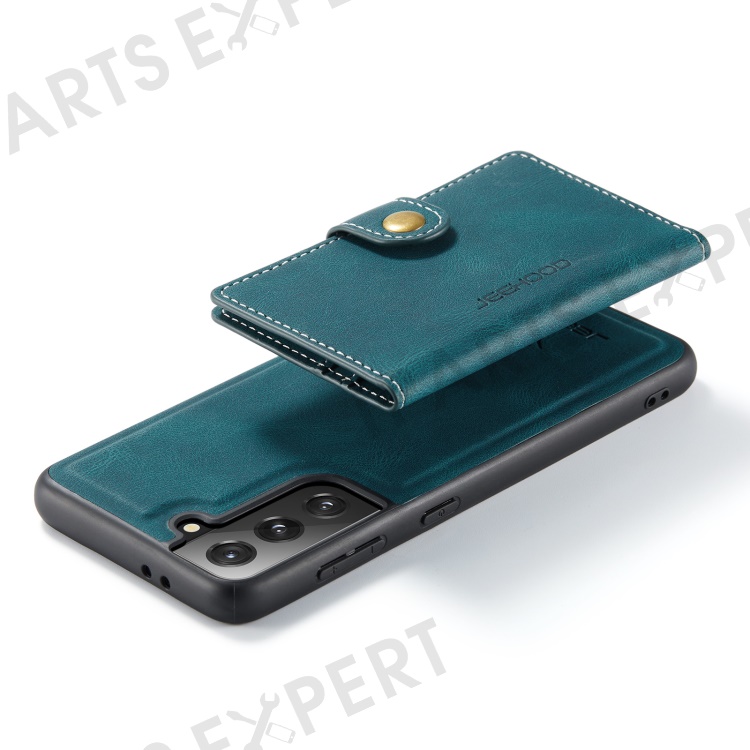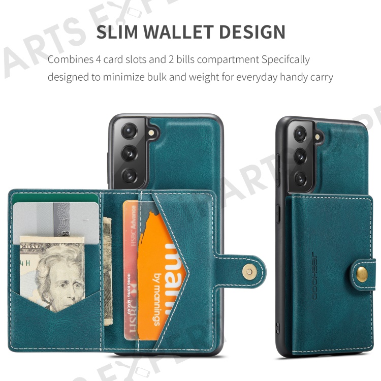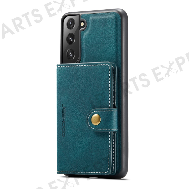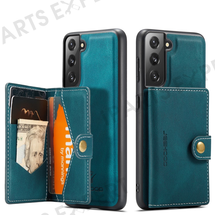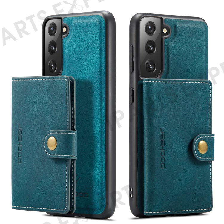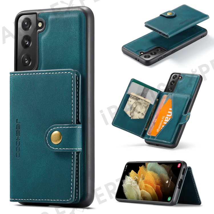 JEEHOOD Magnetic Absorption Detachable Wallet + Leather Coated TPU Cover Phone Case with Kickstand for Samsung Galaxy S22+ 5G - Green