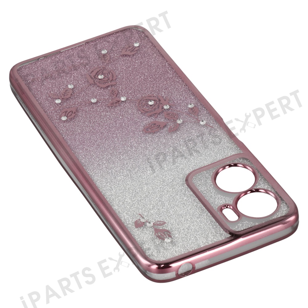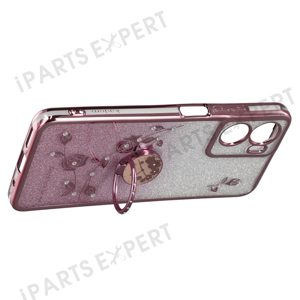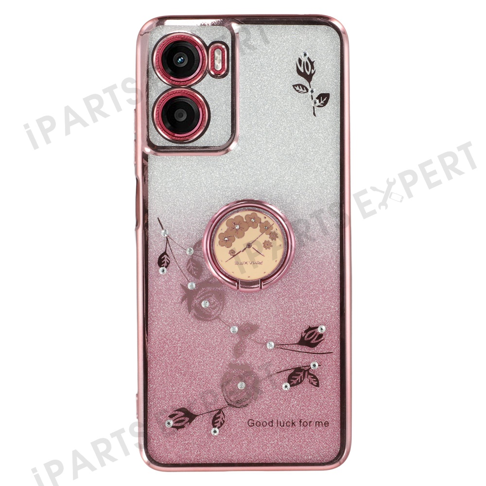 KADEM For Motorola Moto G05 4G / E15 4G Case Ring Kickstand TPU Flowers Phone Cover Gradient Glitter - Rose Gold