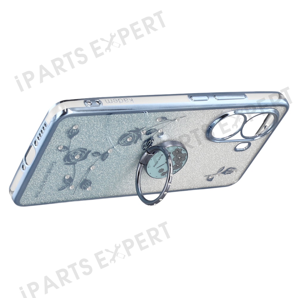 KADEM For Xiaomi Poco X7 Pro 5G Case Ring Kickstand TPU Flowers Phone Cover Gradient Glitter - Blue