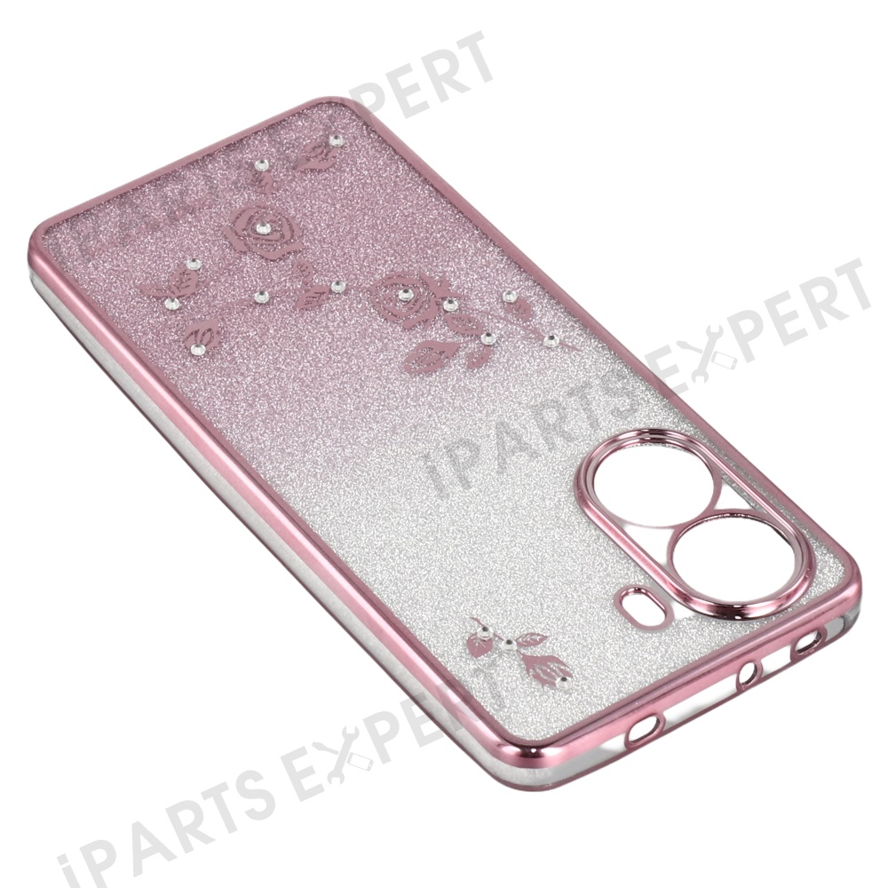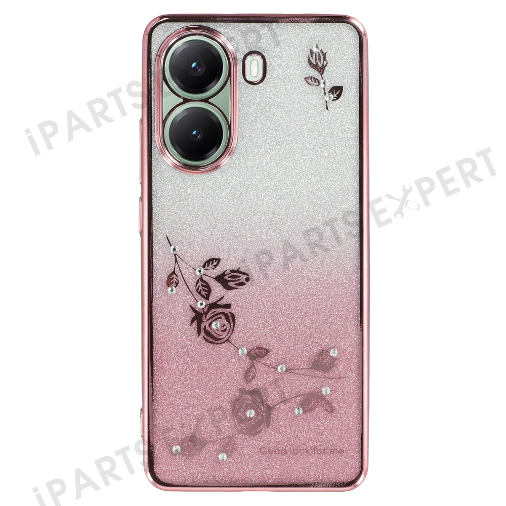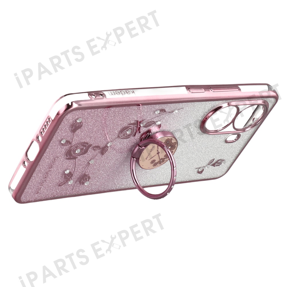 KADEM For Xiaomi Poco X7 Pro 5G Case Ring Kickstand TPU Flowers Phone Cover Gradient Glitter - Rose Gold