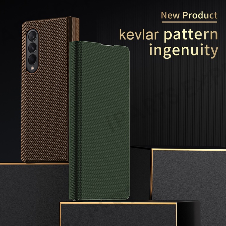 Kevlar Texture Anti-Fingerprint Magnetic Absorption PU Leather + PC Phone Cover Case for Samsung Galaxy Z Fold3 5G - Brown