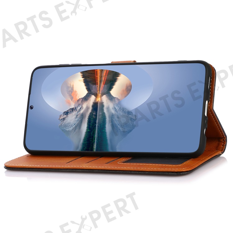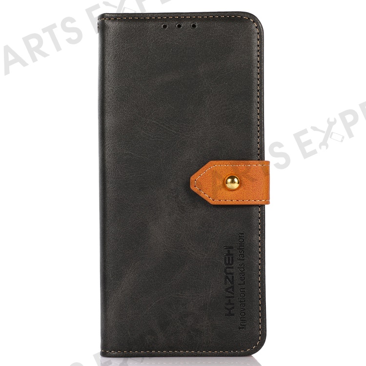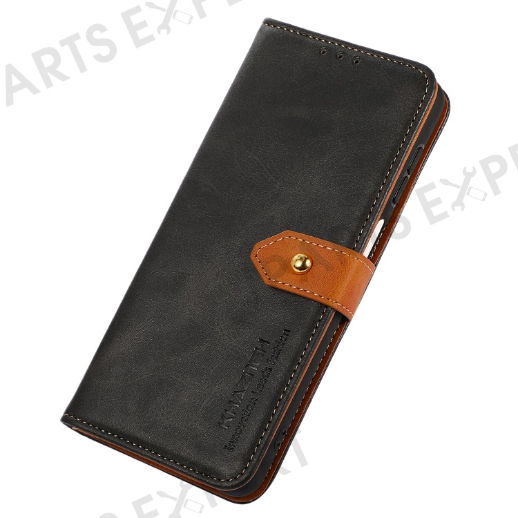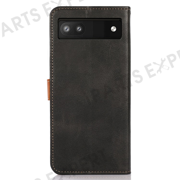 KHAZNEH For Google Pixel 7a Gold Button Magnetic Leather Wallet Cover Stand Cowhide Texture Phone Case - Black