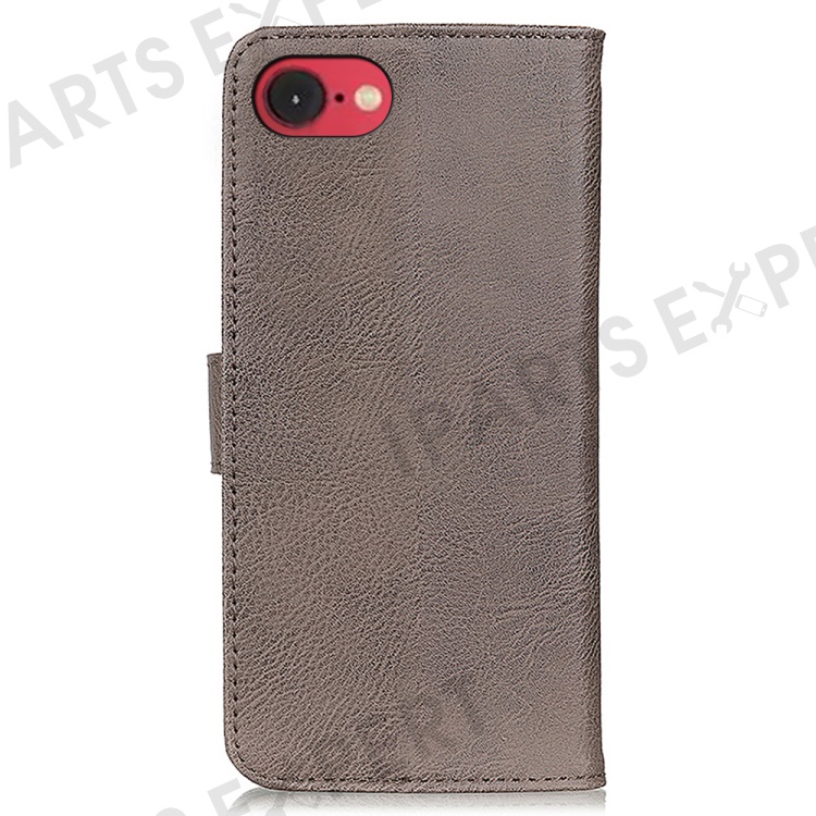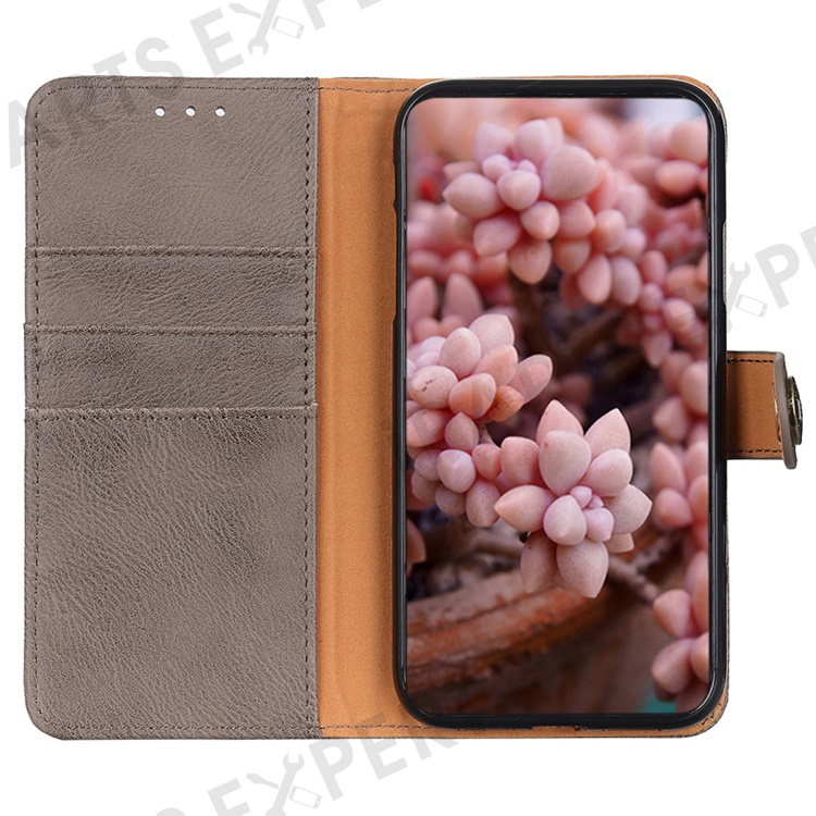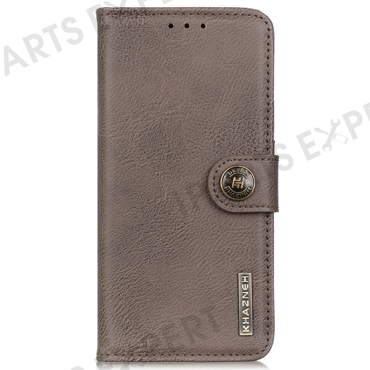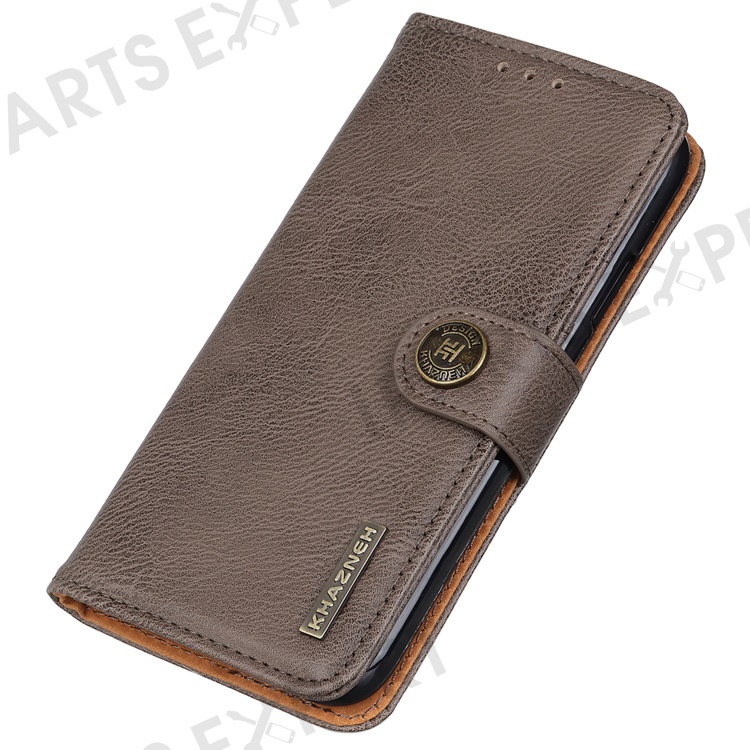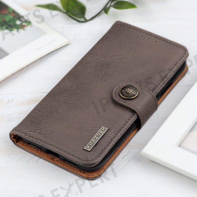 KHAZNEH For iPhone 17e / 16e Wallet Case Cowhide Texture Leather Flip Phone Cover - Khaki