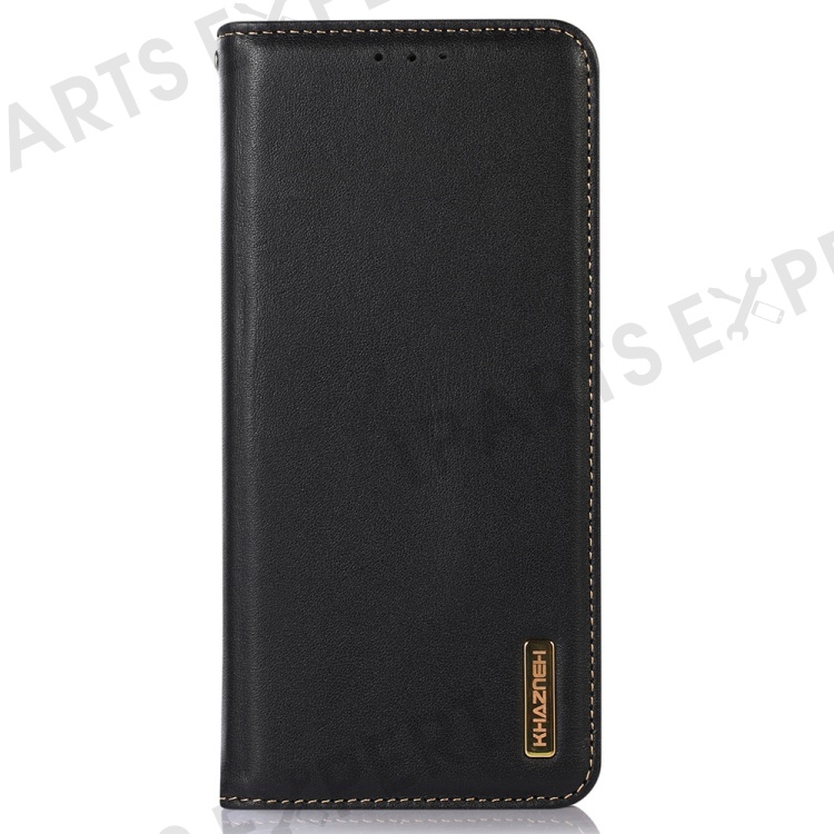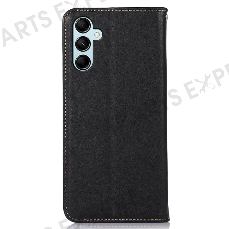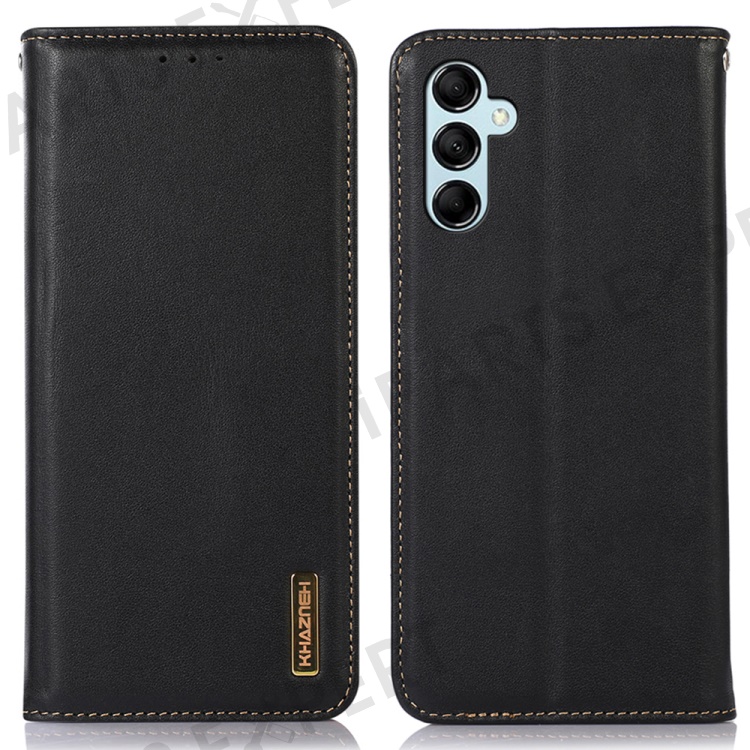 KHAZNEH For Samsung Galaxy M14 5G Stand Wallet Phone Case RFID Blocking Genuine Cowhide Leather Cover - Black