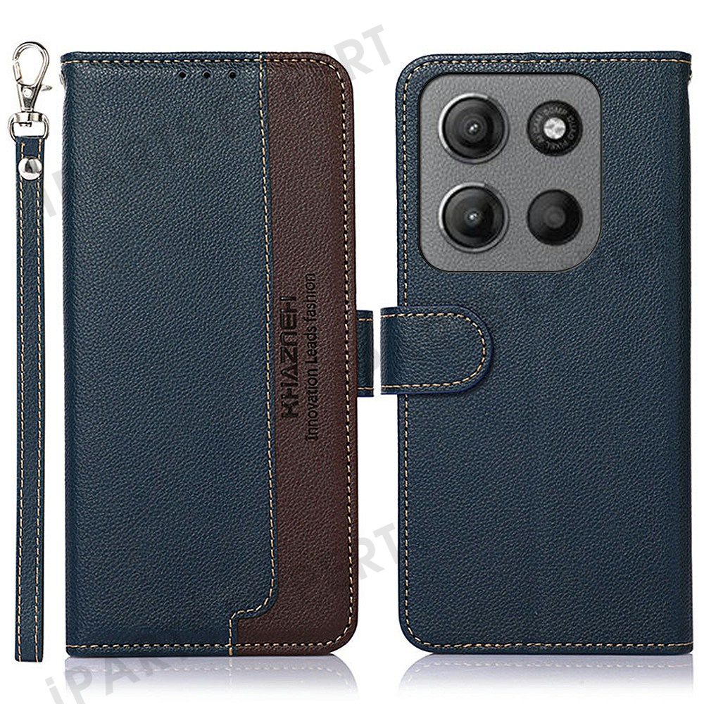 KHAZNEH For Motorola Moto G17 Power 4G / G17 4G / G15 4G Case RFID Blocking Wallet Litchi Texture PU Leather Phone Cover - Blue