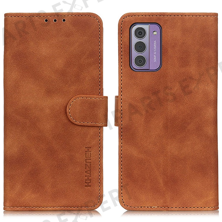 KHAZNEH For Nokia G42 Shockproof Phone Case Retro Texture Wallet Stand Leather Phone Cover - Brown
