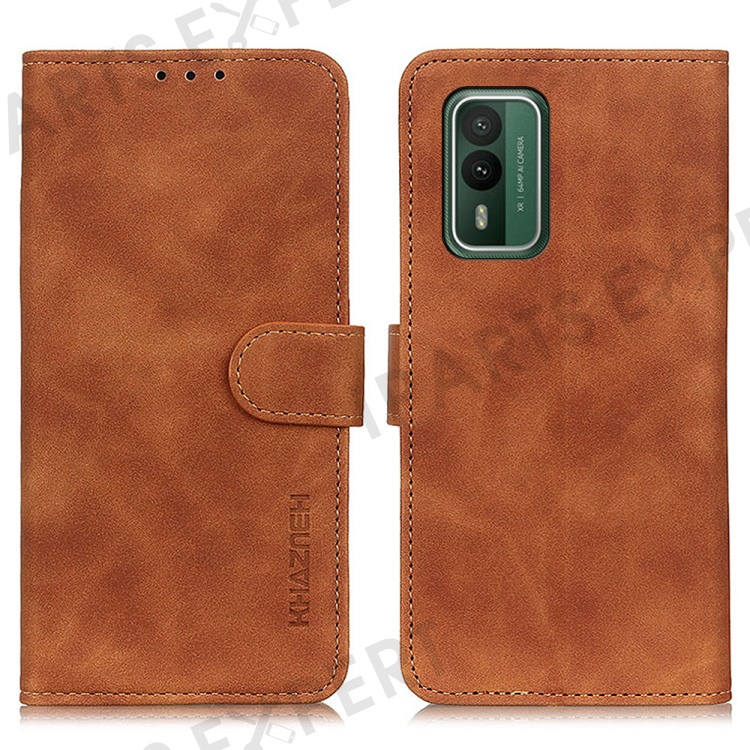 KHAZNEH For Nokia XR21 Retro Magnetic Clasp Phone Case PU Leather Wallet Stand Cover - Brown