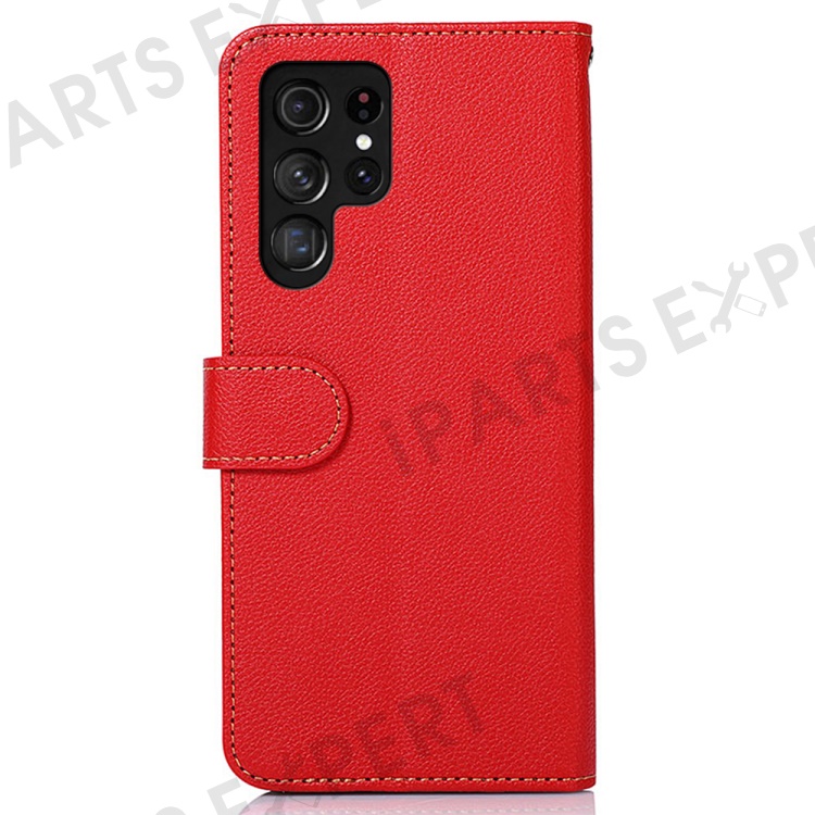 KHAZNEH For Samsung Galaxy S24 Ultra Case Leather Cell Phone Cover Wallet with RFID Blocking - Red