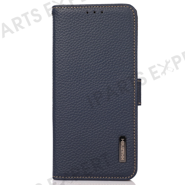 KHAZNEH For Samsung Galaxy S24 Ultra Phone Case Genuine Cow Leather Wallet Stand Cover - Blue